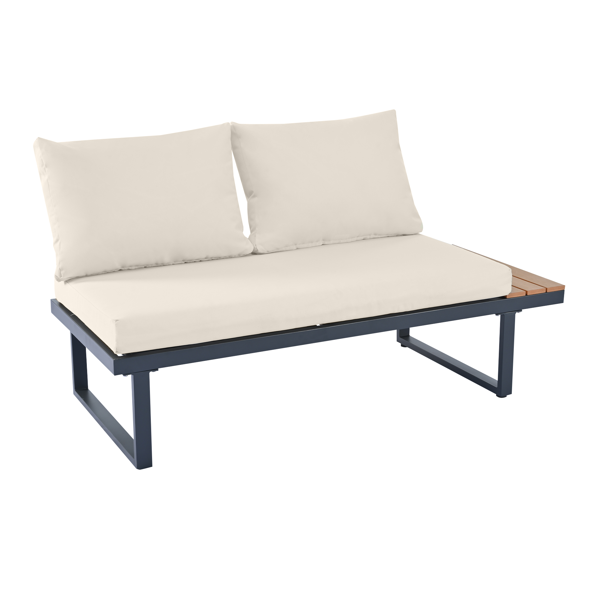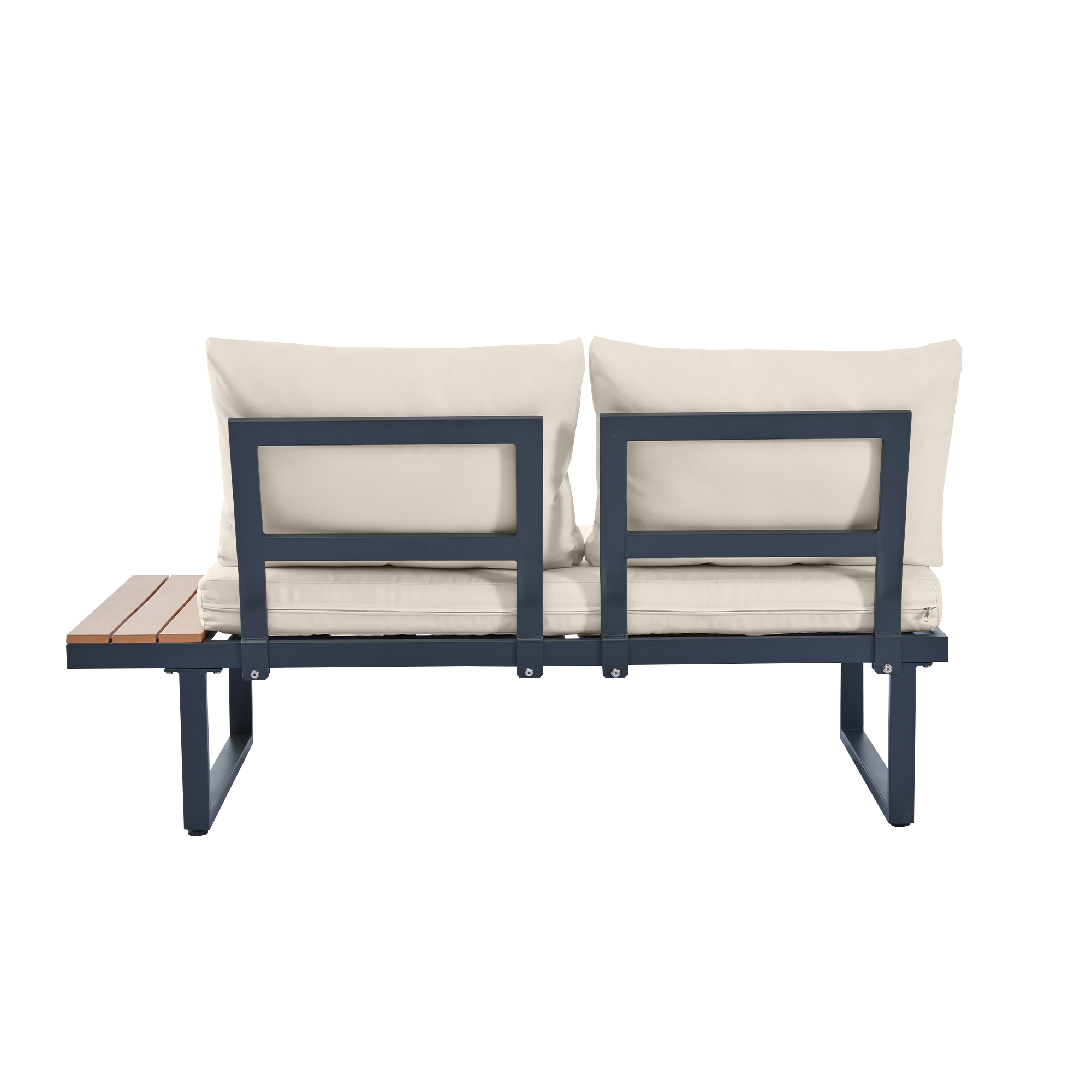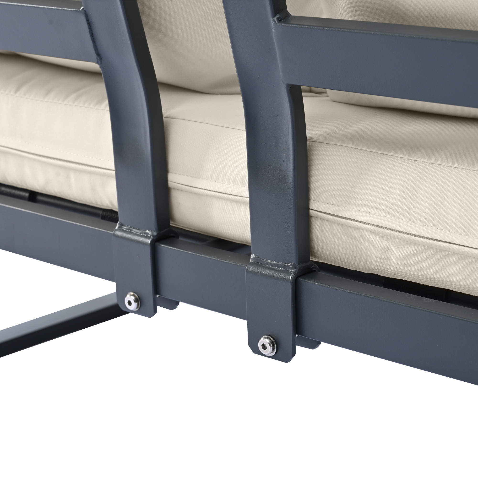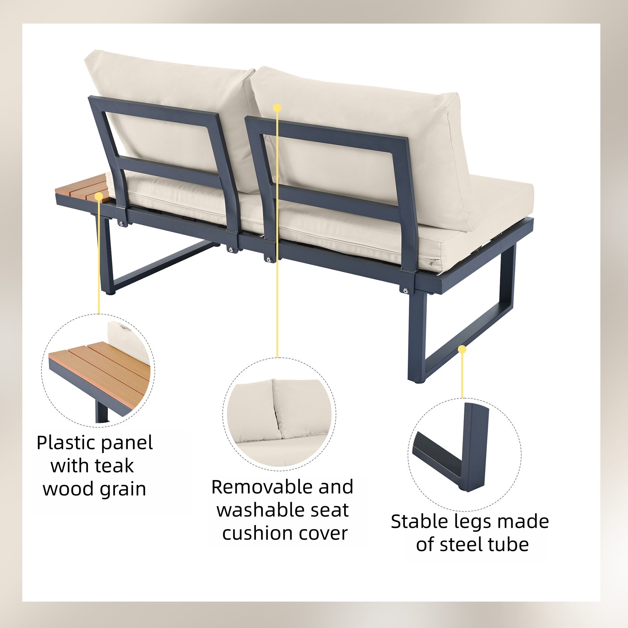 Product Name:4-5 Seater Garden Lounge Set, Galvanized Iron Frame Outdoor Patio Furniture, 4-Piece Set, Reclining & Adjustable Seating, WPC Tabletop Table Included, Beige Fabric + Dark Gray Frame.