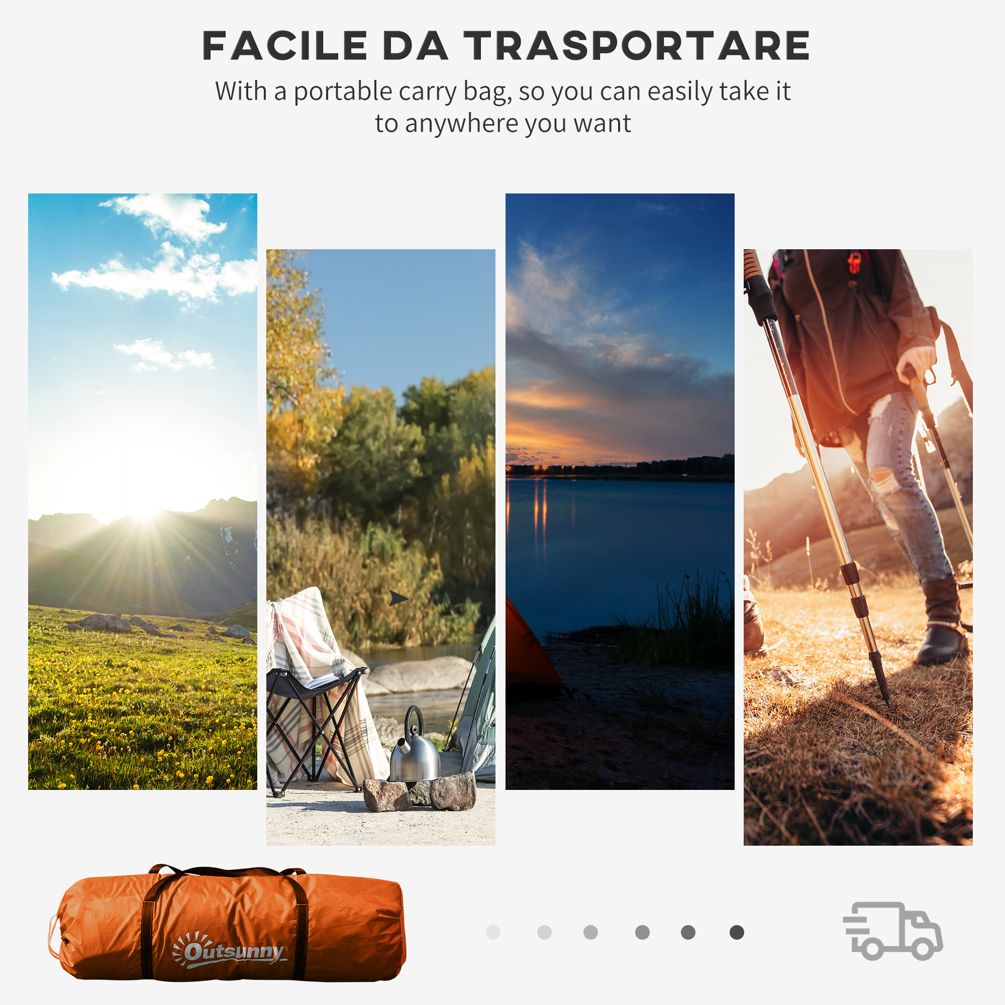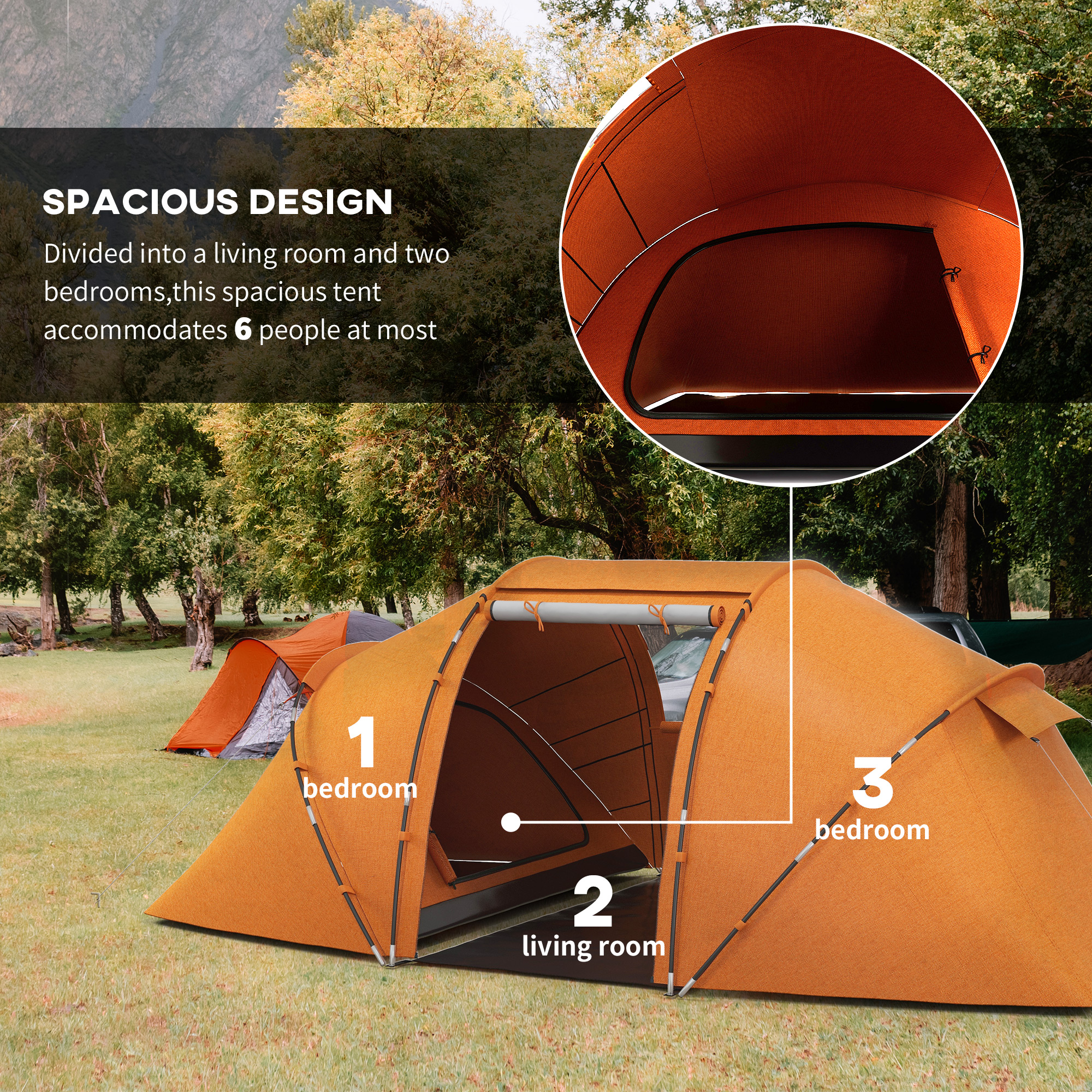 This tent is great for camping, hiking or even festivals. Its spacious design can accommodate up to four-six people comfortably, thanks to the two bedrooms and living room, making it excellent for enjoying time with friends and family. Made from polyester taffeta with fibreglass poles for support and structure, it is UV and water resistant for use in both the sun and rain. It is finished with mesh windows to provide plenty of air circulation as well as keep bugs and mosquitoes at bay.