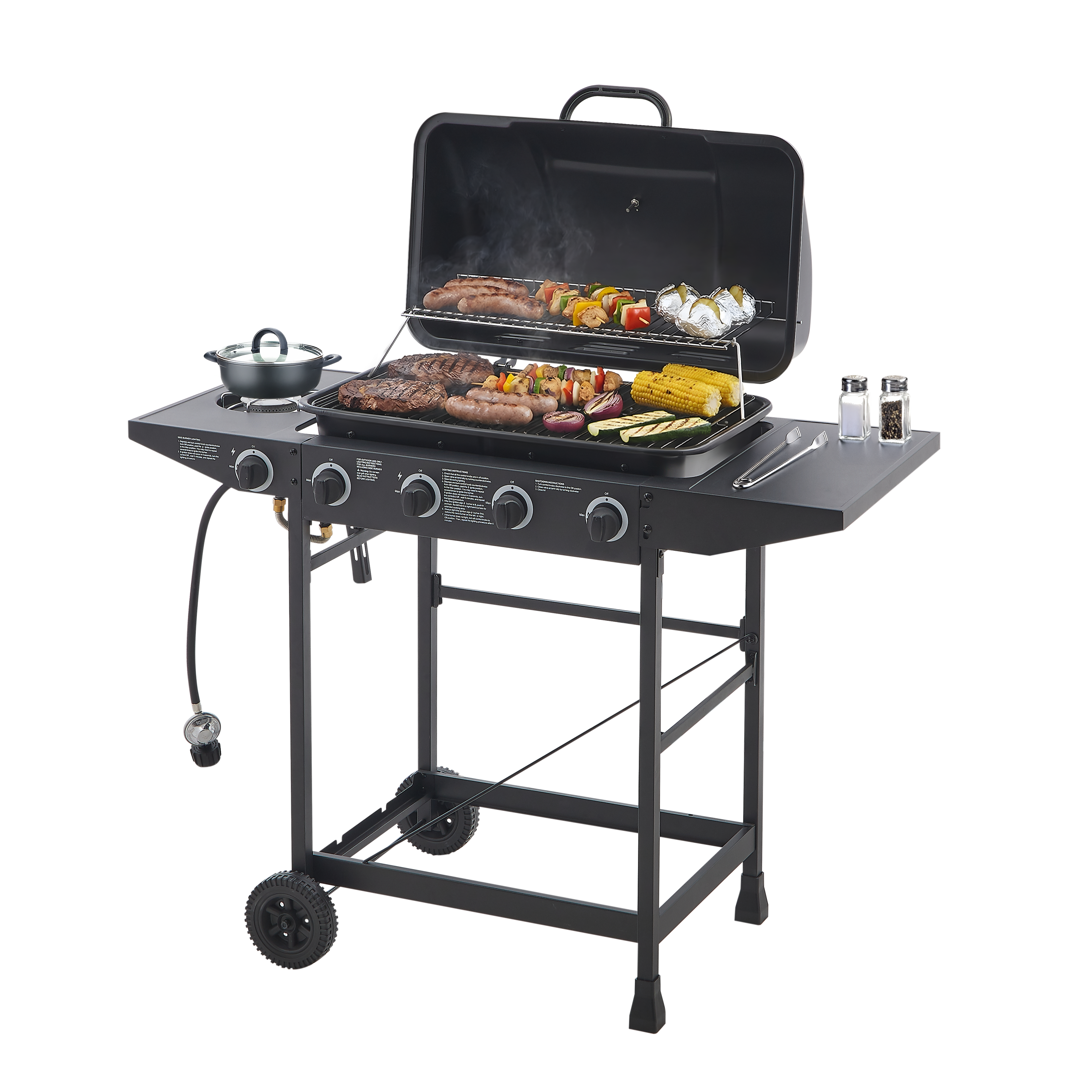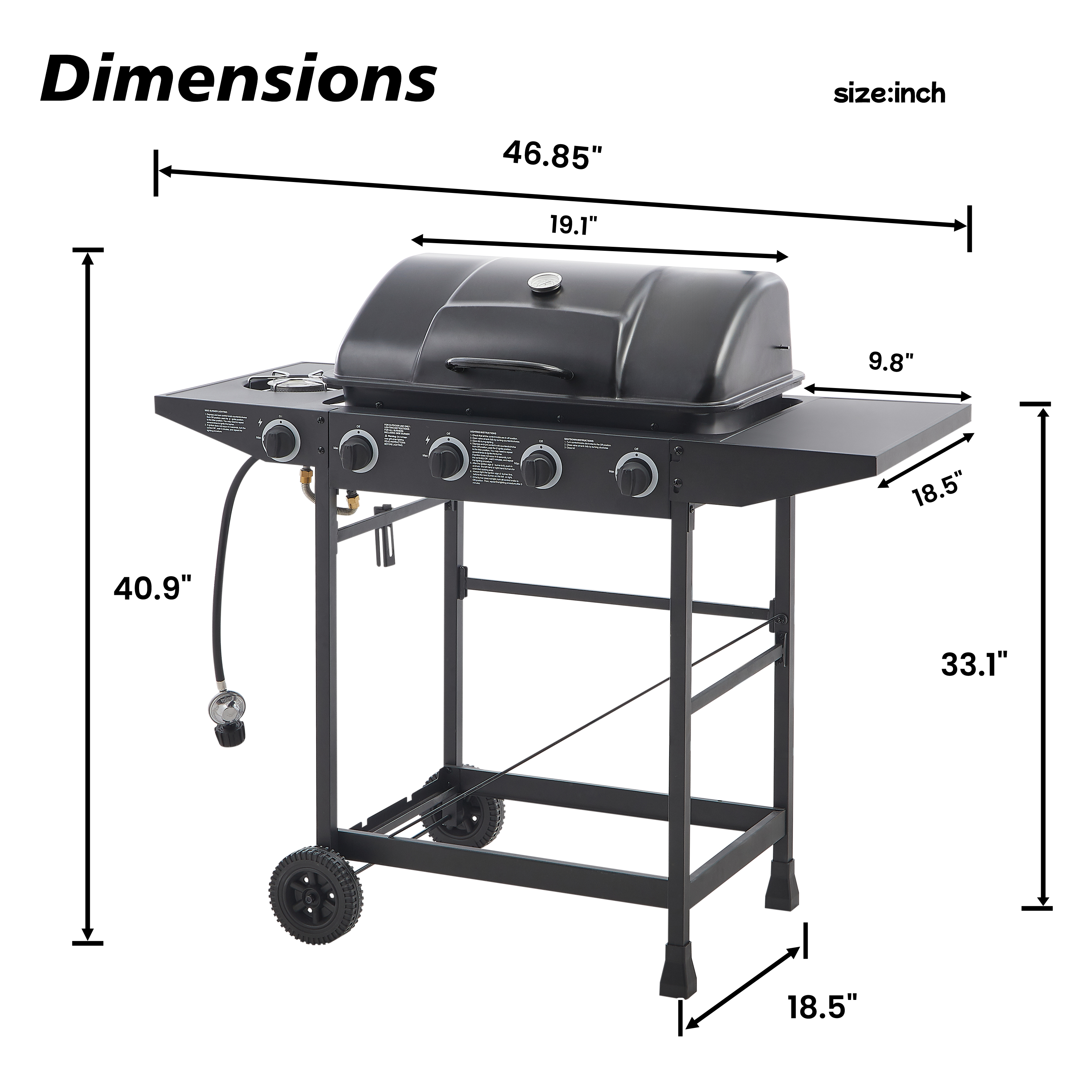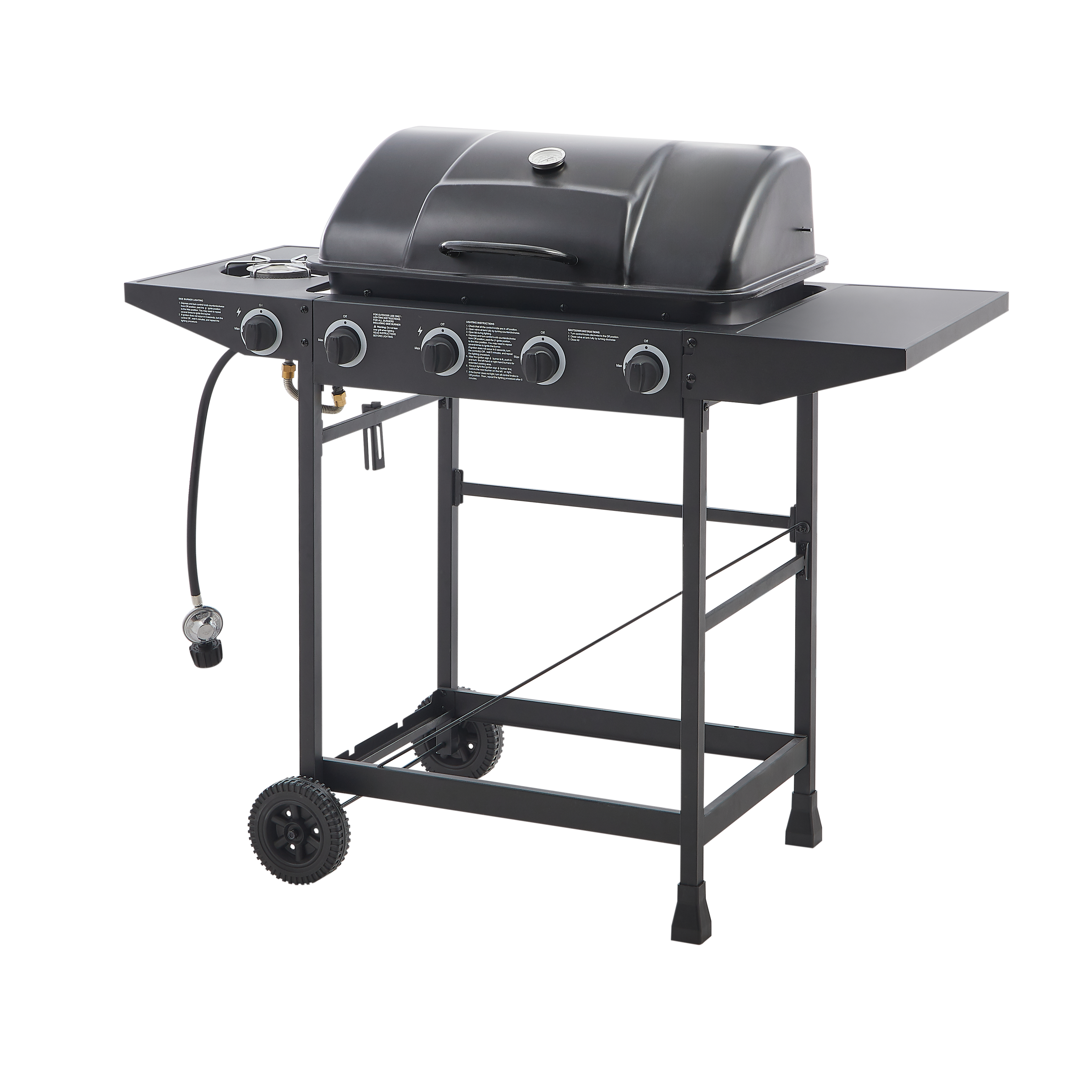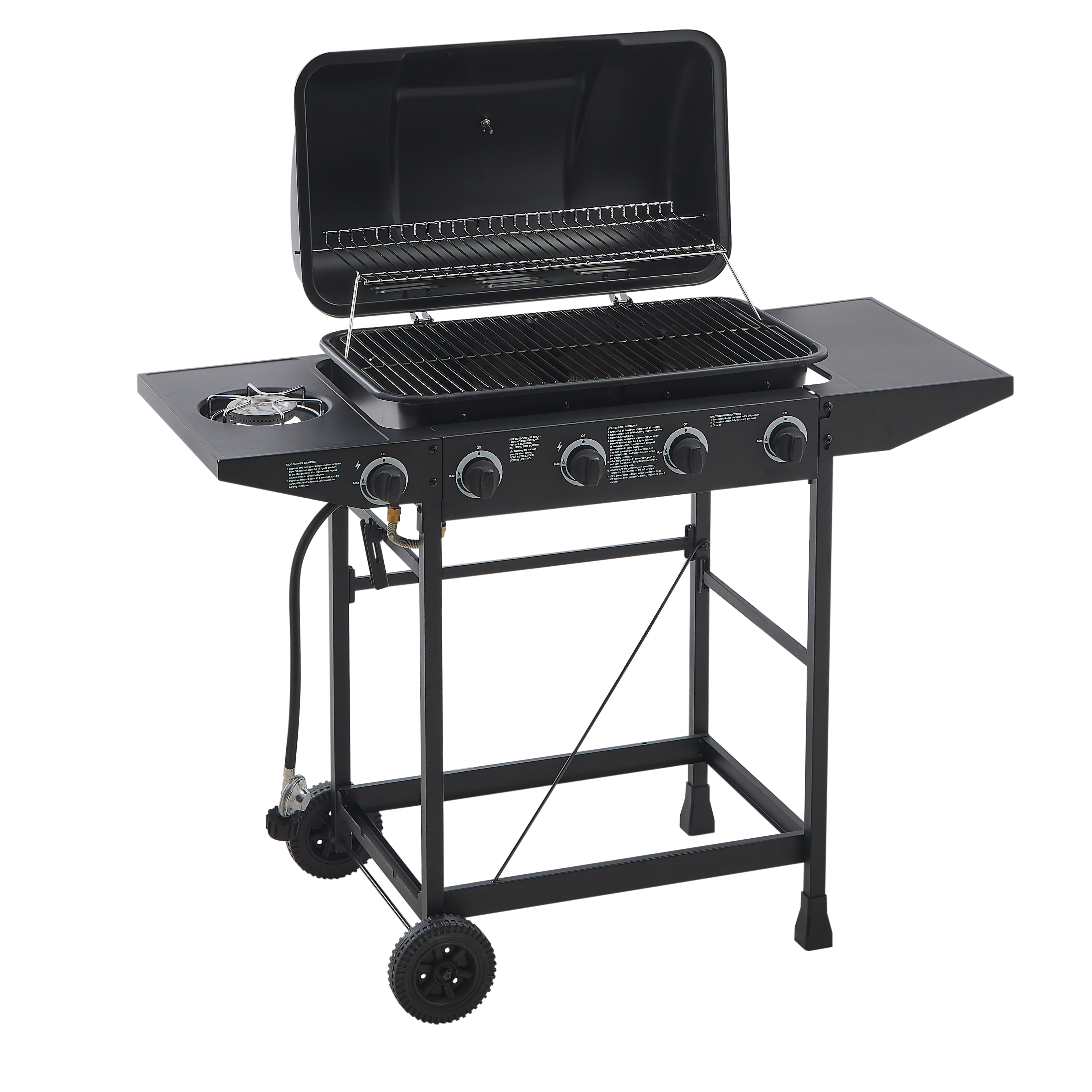 Product Name:4 Burner BBQ Propane Gas Grill with Side Burner 42000 BTU Output Stainless Steel Barbecue Grill with Enamel-Coated Grates and Side Tables for Outdoor Cooking Kitchen and Patio Backyard.
