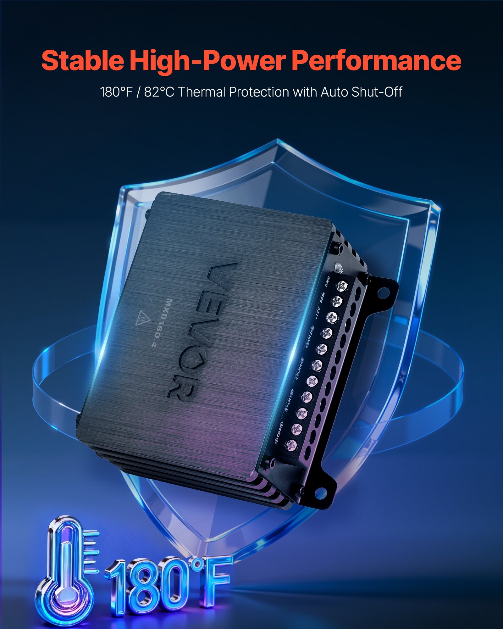 Better Heat Dissipation: The car stereo amp's aluminum alloy shell quickly dissipates heat from internal components for cooler operation and longer lifespan