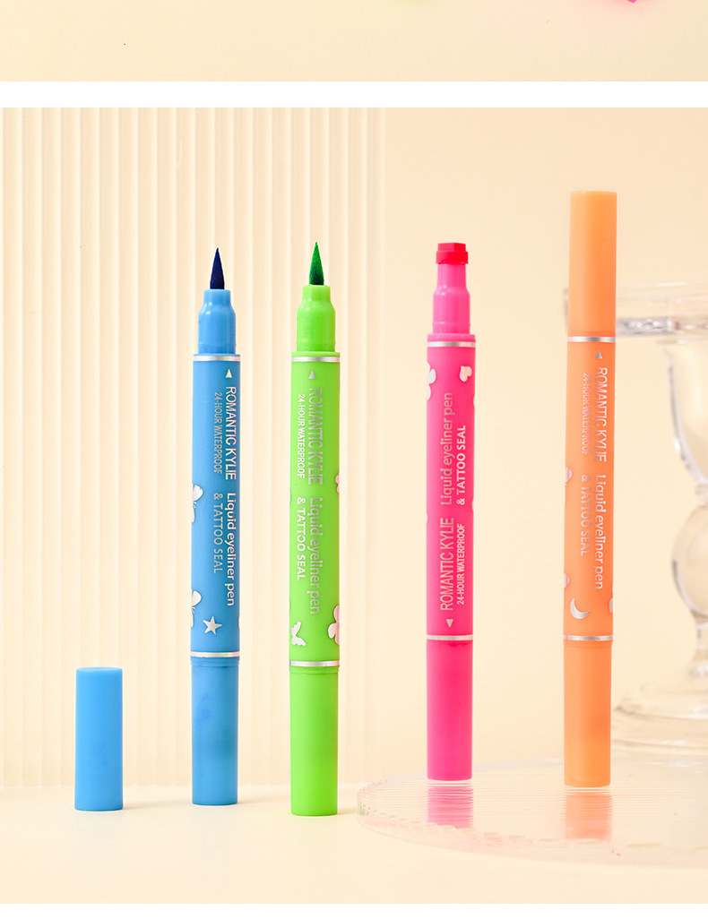 the other end is a patterned tattoo eyeliner stamp pen, a variety of vivid and lovely patterned stamps can be used to decorate your eyes, which can make you more attractive.