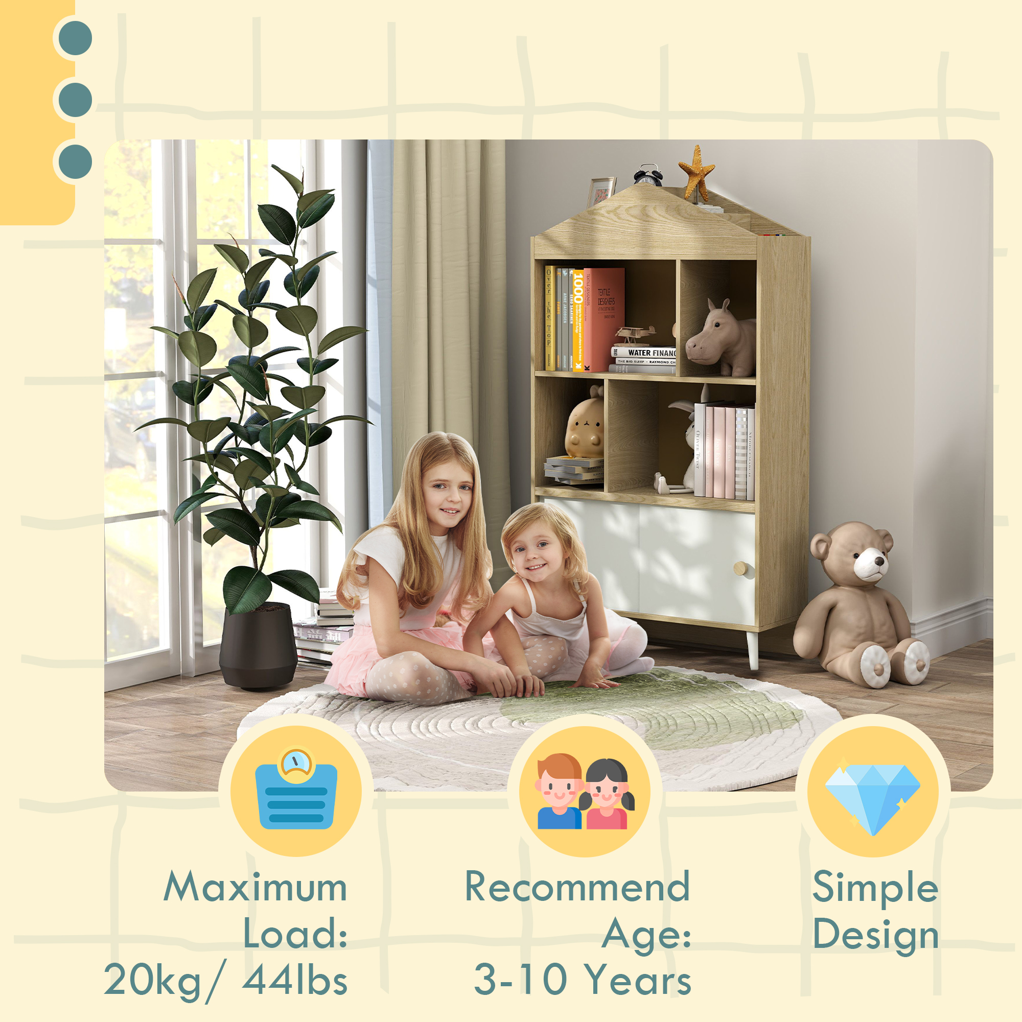 - Versatile and Stylish: This toy storage shelf fits beautifully in any child's room, playroom, or bedroom, blending functionality with a natural wood finish esthetic