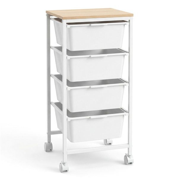 4-Drawer Rolling Storage Cart, Mobile Utility Organizer With MDF Wooden Top (Natural)