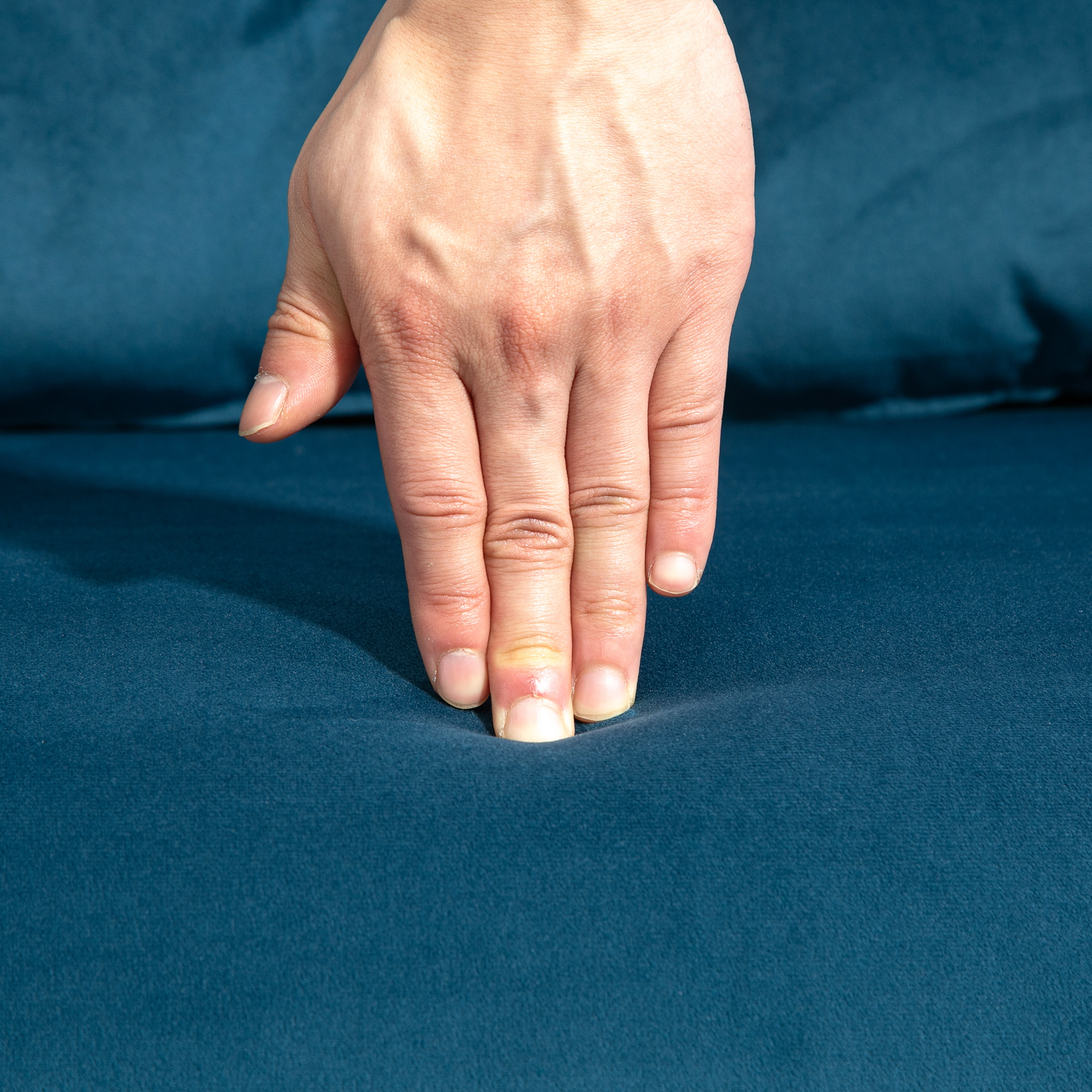 • Pillow, all over padding and velvet-feel upholstery for comfort