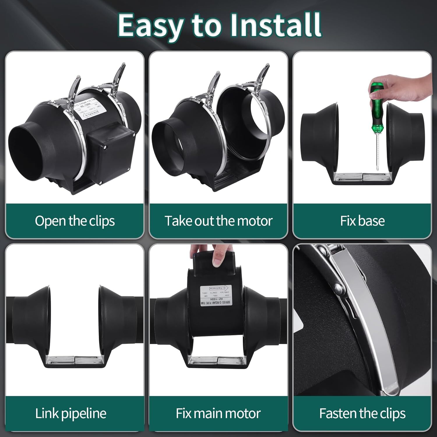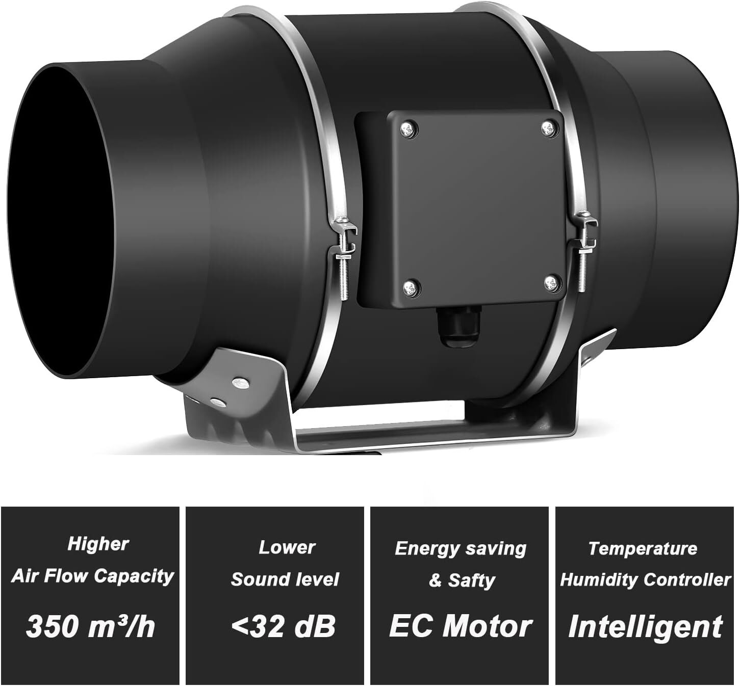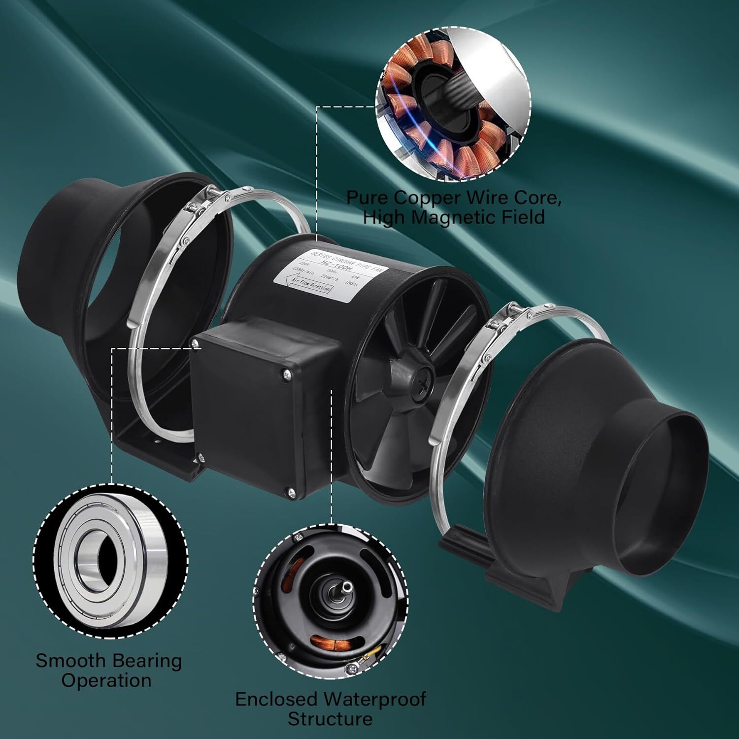 4 In100mm 220V Quiet Inline Extractor Fan Bathroom Hydroponics For Ventilation