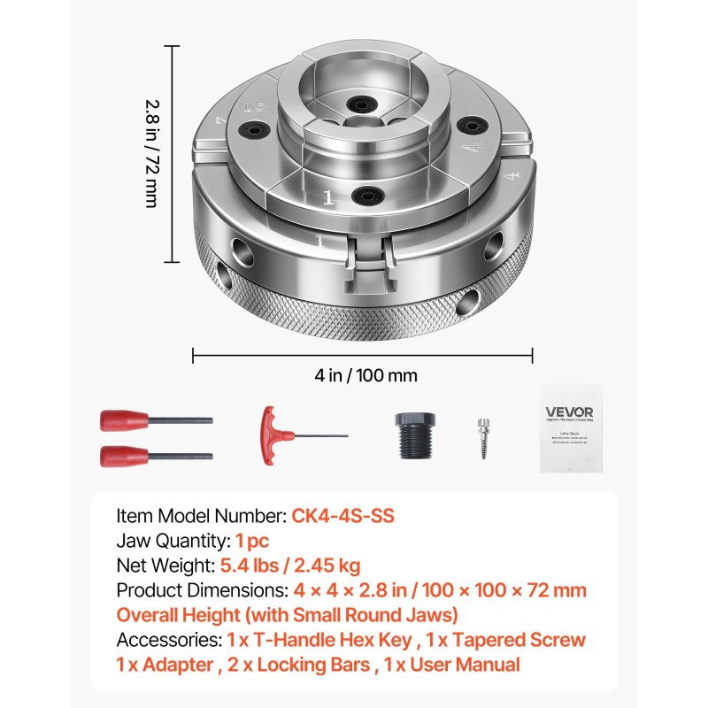 Fits 1" x 8 TPI Wood Lathes: This 4-jaw wood lathe chuck features a 4-inch outer diameter and an M33 x 3.5 mm internal thread. The 1" x 8 TPI adapter fits 1" x 8 TPI lathe spindles, making it ideal for most medium and large woodworking lathes