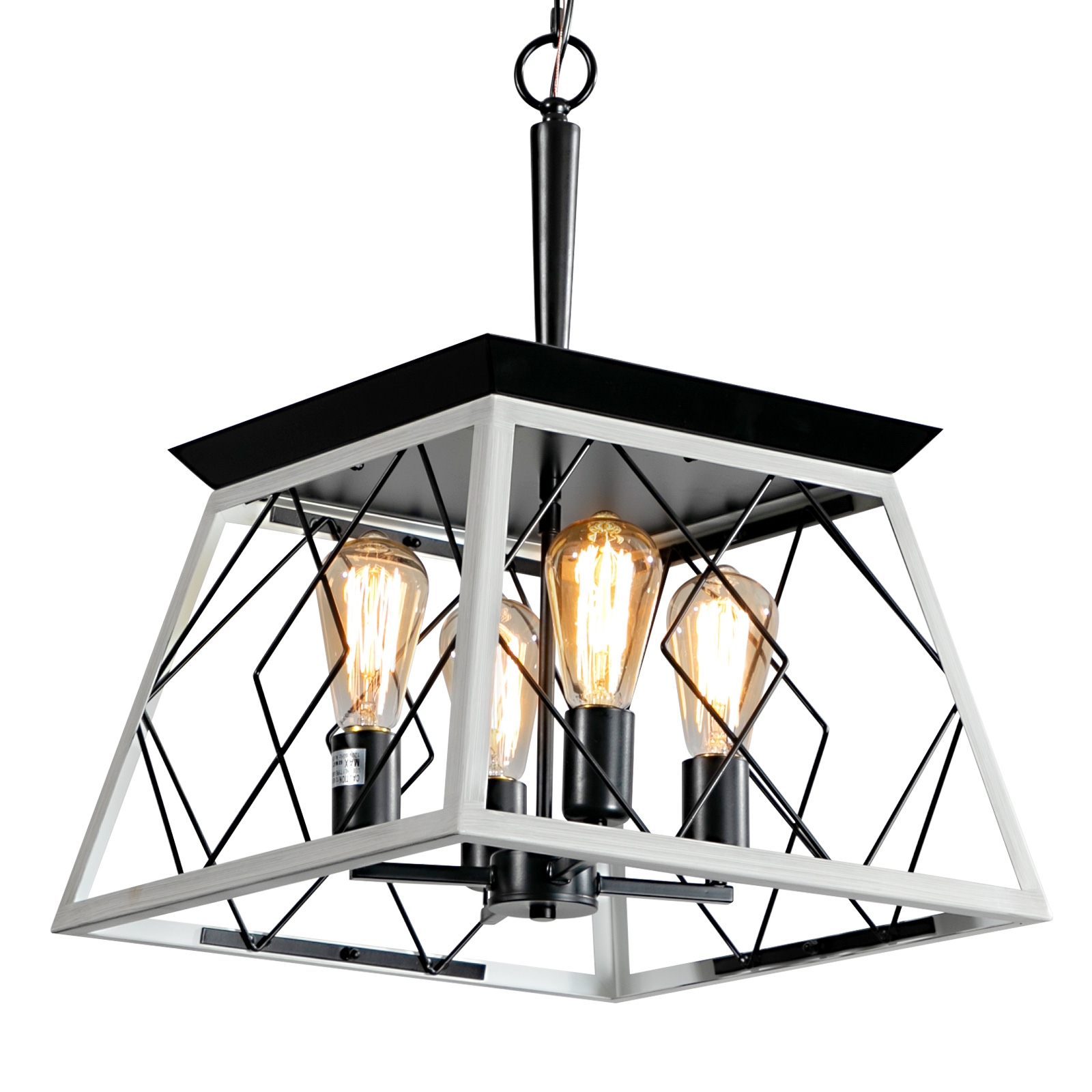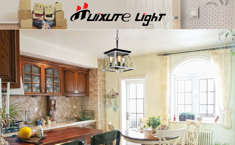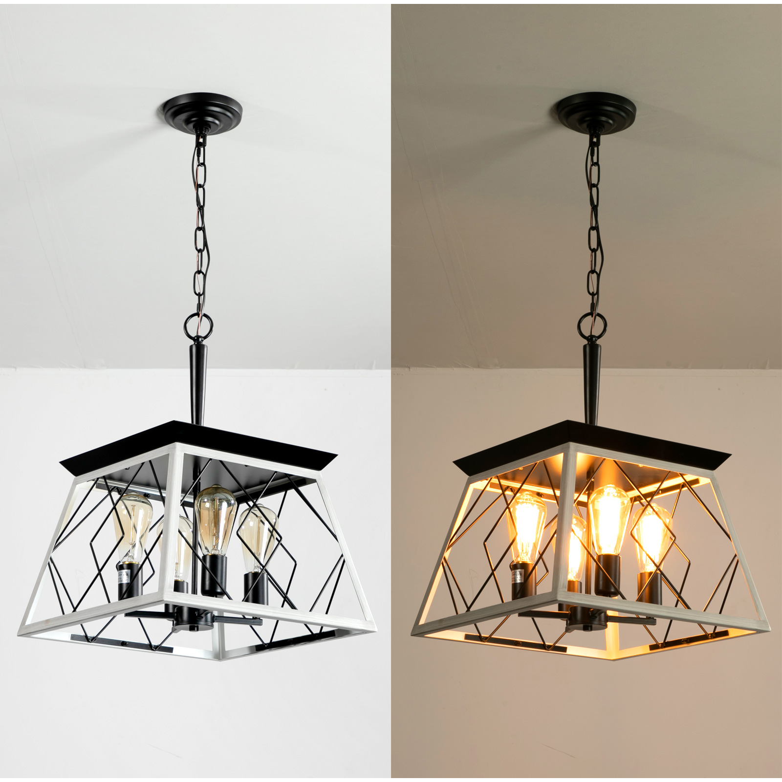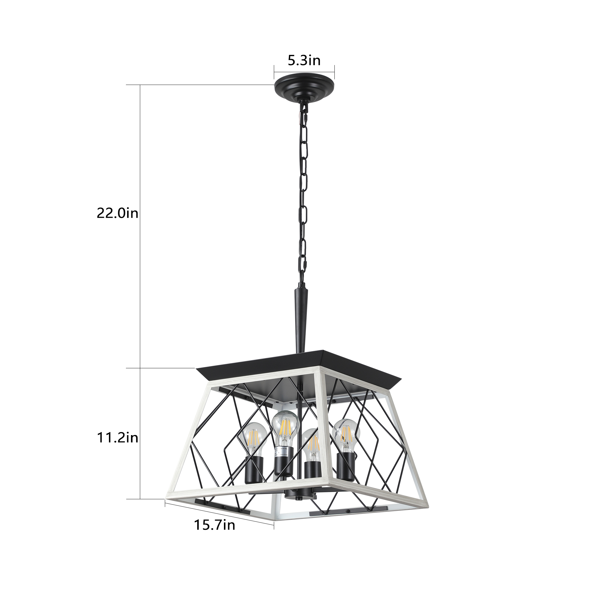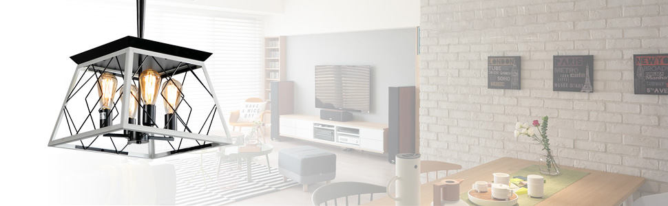 Farmhouse Perfect Design: This dining room farmhouse chandelier light fixture use crafted and durable metal frame with oak white and ORB color linear wire finish to brings you a country, antique rustic and traditional feeling. Square shape with iron cage design to add a retro,artistic and charming look.Classic vintage chandelier can creat a cozy, nature, love living environment.Easy To Assemble: Farmhouse geometric entryway chandelier is hardwired and preassembled iron cage frame.You need to do is adjustable the length of the chains for proper height. The kitchen light can works on flat, sloped, slanted and vaulted ceiling.Bulbs:Rustic chandelier uses 4pcs E26 bulbs(bulbs not included)Recommended to use 6W E26 LED Edison Bulbs,you can enjoy bright light or calming dim light.Widely Application: Farmhouse 4-light chandelier is perfectly used for dining room,kitchen island, living room, entryway,foyer,hallway,porch,farmhouse, restaurant,bar,corridor,workshop and more.