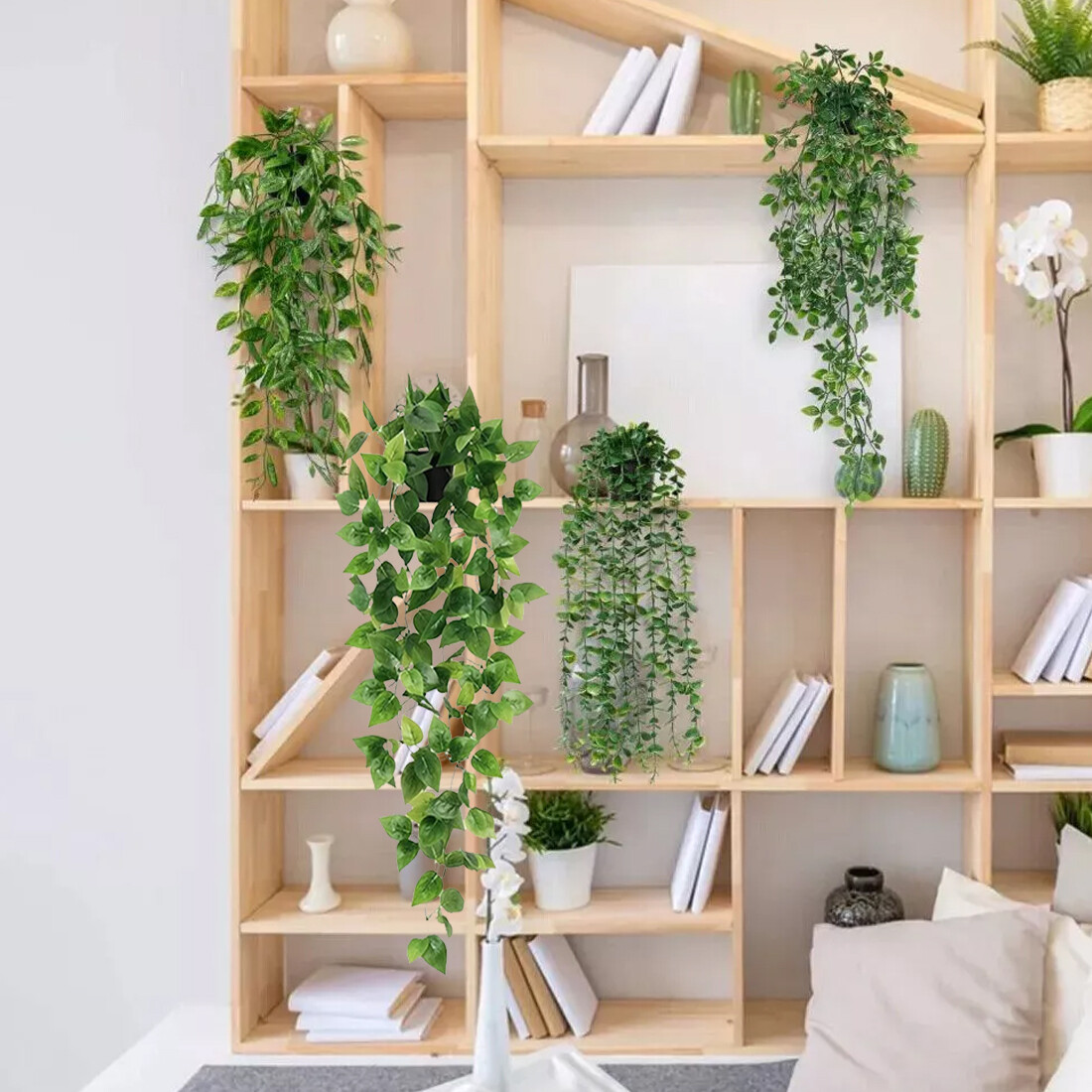 4 Pack Artificial Hanging Plants In Pots Indoor Fake Trailing Plants Home Room
