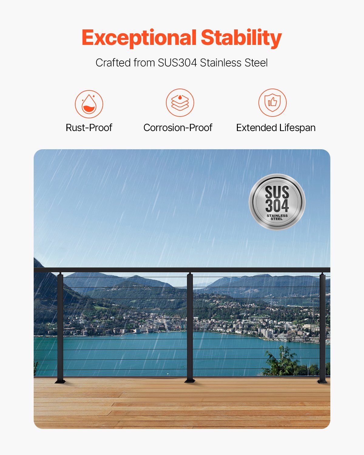 4-Pack Cable Railing Post, 36x1x2 In Horizontal-Hole Deck Railing Post With Pre-Drilled Holes, Stainless Steel Cable Rail Post With Horizontal And Curved Bracket, Black, 4JZLGZXHS914UUOI6001V0