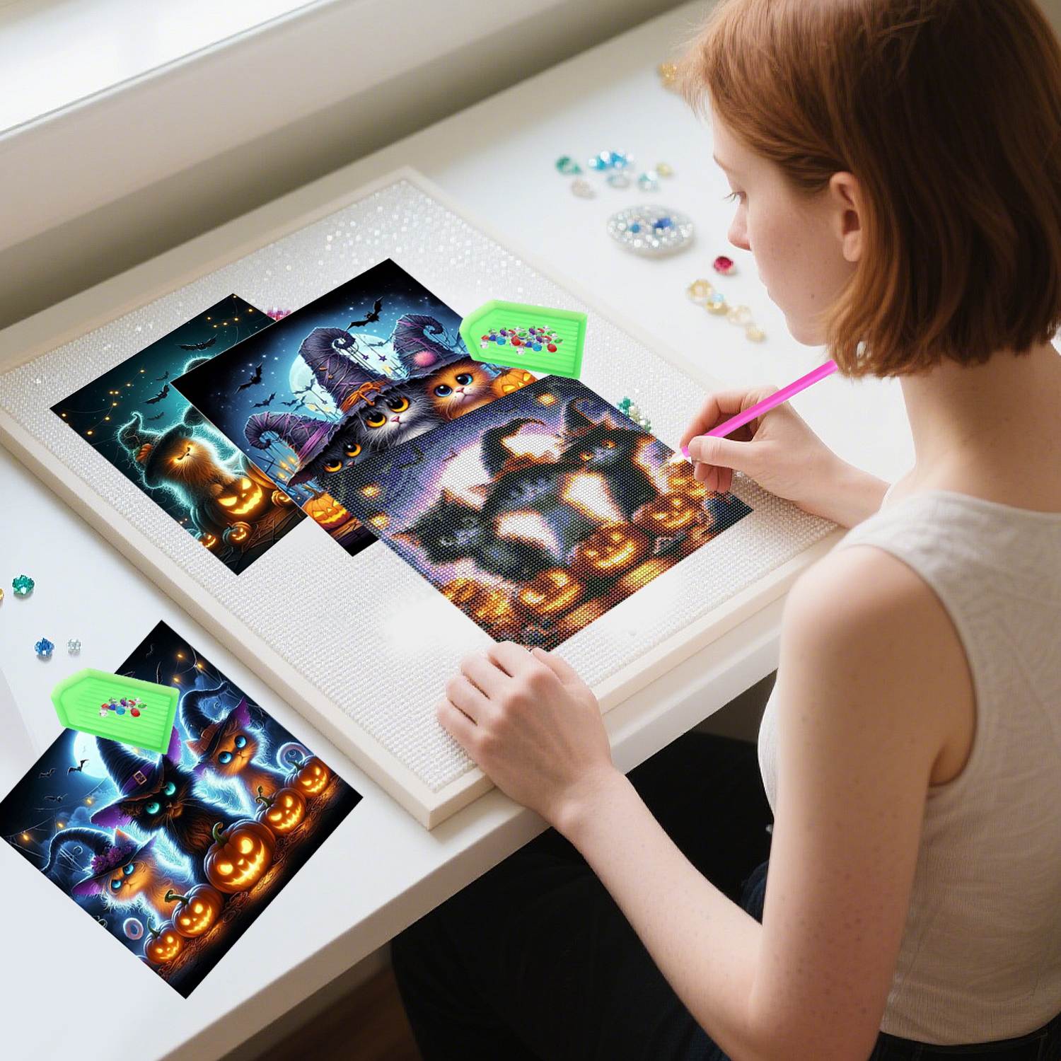 Interesting Halloween Gifts: these Halloween diamond painting kits can be regarded as nice Halloween gifts for friend, kids, loves and more; It can not only cultivate children's hands on ability and patience, but also enhance their understanding of color and aesthetics With matched canvas, gem sticker and tools, these Halloween diamond painting ornaments feature with clear printings and waterproof texture, good texture and not easy to fade, easy for you to finish, can be kept for a long time