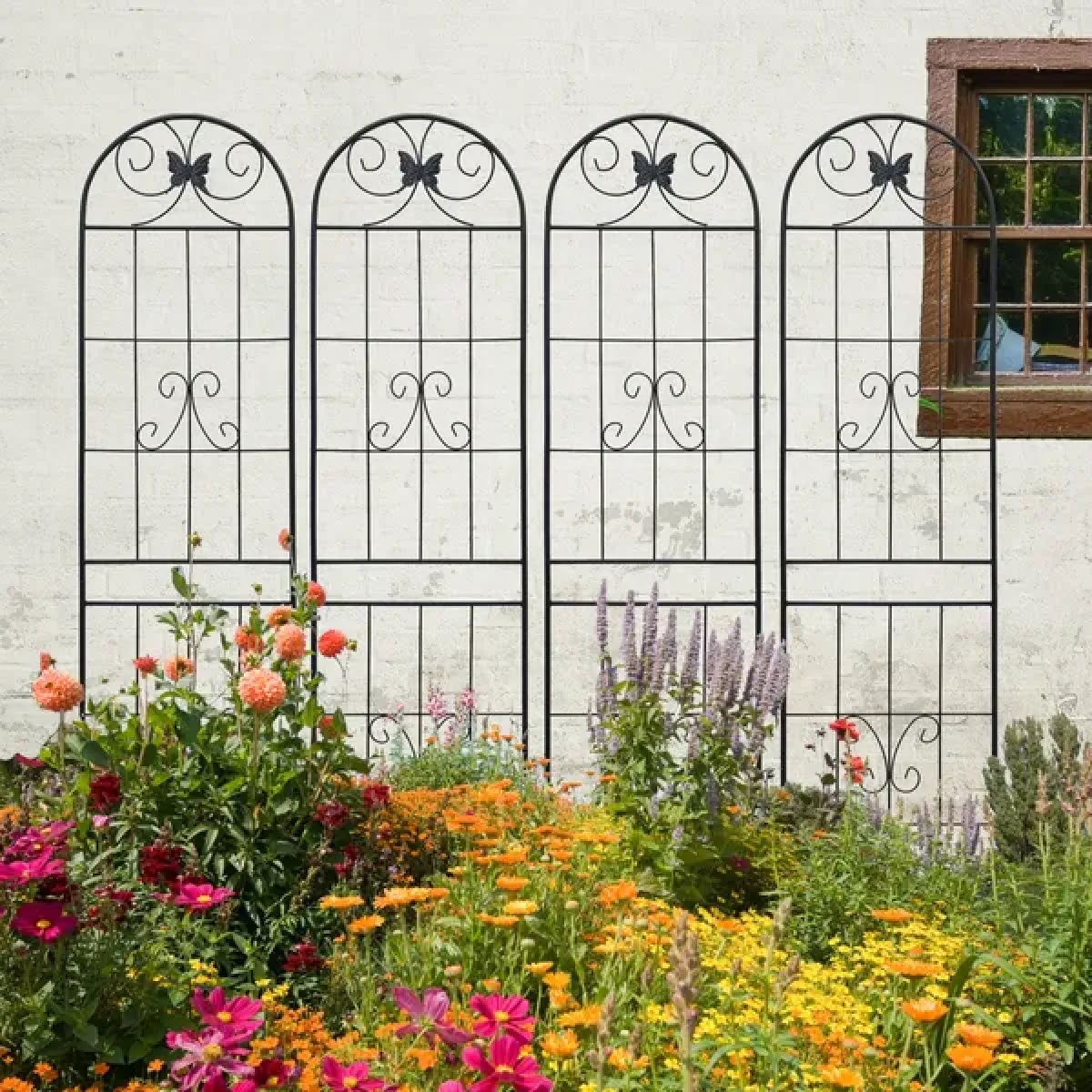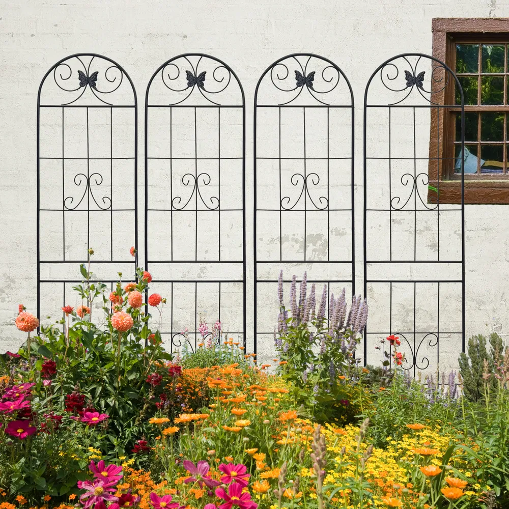 4 Pack Metal Garden Trellis 86.7" X 19.7" Rustproof Trellis For Climbing Plants Outdoor Flower Support Black