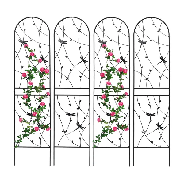4 Pack Metal Garden Trellis 86.7" X 19.7" Rustproof Trellis For Climbing Plants Outdoor Flower Support Dragonfly Deco Black