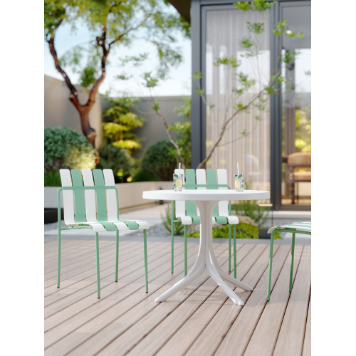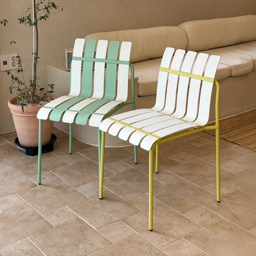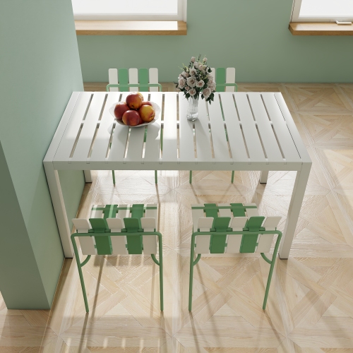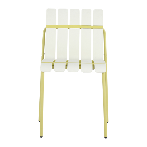 Product Name:4-Pack Modern Striped Color Block Chairs - Waterproof PP Seat & Sturdy Metal Legs, Indoor/Outdoor Dining Set for Patio, Balcony, Café (White & Green)