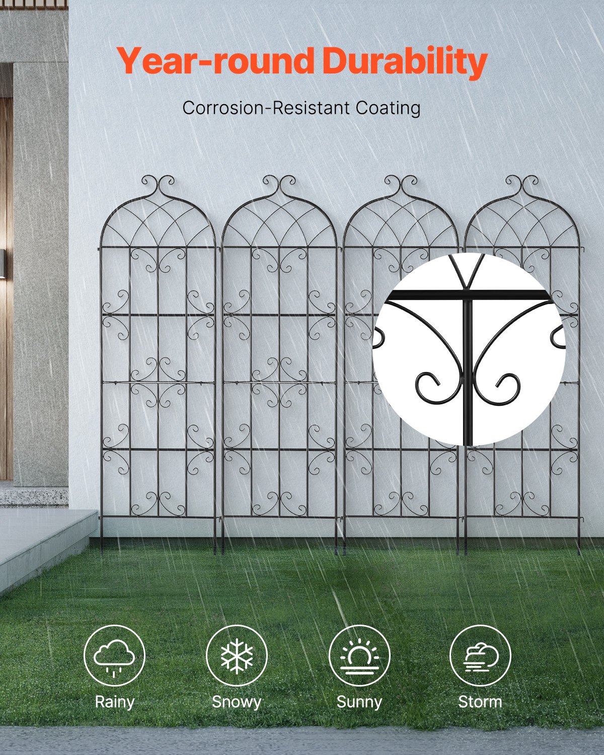 All-Weather Durability: Featuring a robust powder-coated finish, this garden trellis for climbing plants is built to resist rust and corrosion, ensuring it withstands the elements while looking great for years to come.