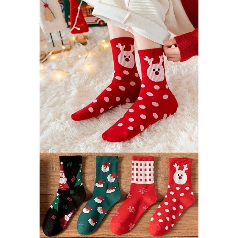 This 4 pair unisex Christmas sock set offers a warm and comfortable structure suitable for winter use. The seasonal patterns create a festive look that fits both casual and home wear. Designed for men and women. Ideal for everyday use or holiday gifting.