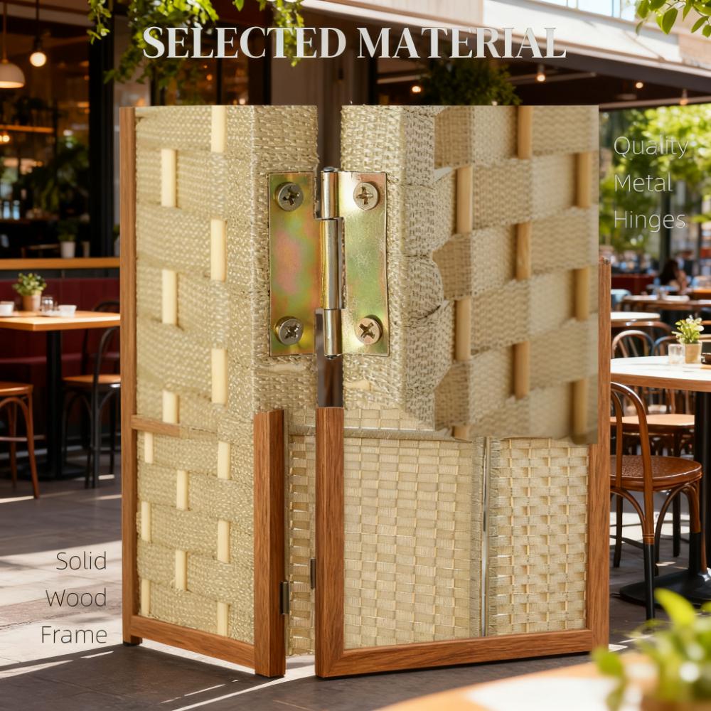 Features: - It features a weaving pattern with an elegant arched top - Create private sections or use it as a decorative background in any room - Solid pine wood frame provides strong support - Polypropylene assures enhanced privacy and durability - Four-panel folding design with 9 metal hinges allows for easy storage - A lightweight design makes it easy to move - No assembly required Specification: - Color: Beige - Materials: Polypropylene, Pine Wood - Overall Dimensions: 63" W x 0.6" D x 66.9" H - Folded Dimensions: 15.7" W x 2.5" H x 66.9" H - Single Panel Size: 15.7" W x 0.6" D x 66.9" H - Foot Height: 2.6" H - Net Weight: 11 lbs. - Package Includes: - 1 x Room Divider - 1 x Manual