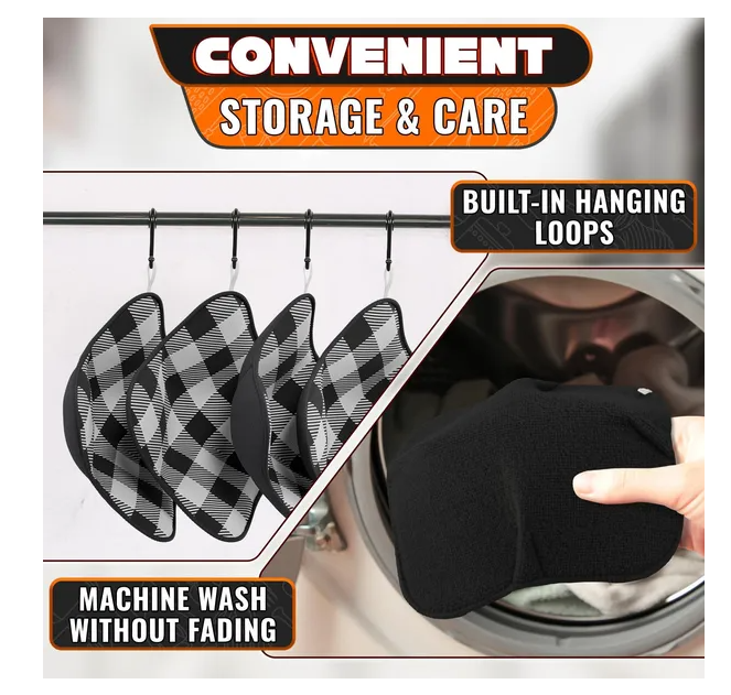 Space-Saving & Practical: Measuring 7.5"x7.5", this hot bowl holder offers easy storage & fits any kitchen. The black-and-white design complements decor while serving as bowl koozies for microwave use