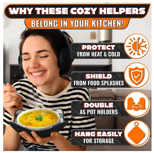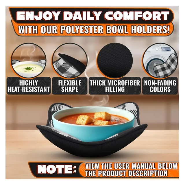 Non-Slip, Comfortable Grip: Bowl cozies for microwave deliver a secure, non-slip grip, preventing spills. Bowl pot holders for hot food ensure comfort when handling hot items for easier serving