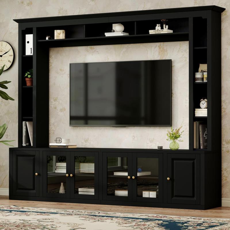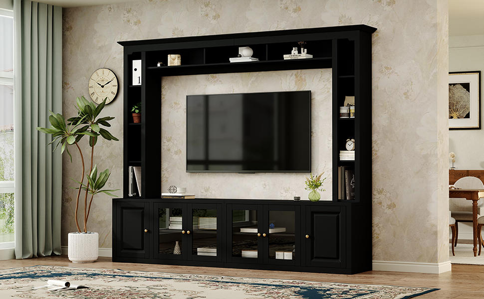 Product Name:4-Piece Modern Entertainment Center Wall Unit with Bookshelves, All-in-1 Large TV Stand with Tempered Glass Door for TVs Up to 80", 92inch Media Console with Adjustable Shelves for Living Room, Black