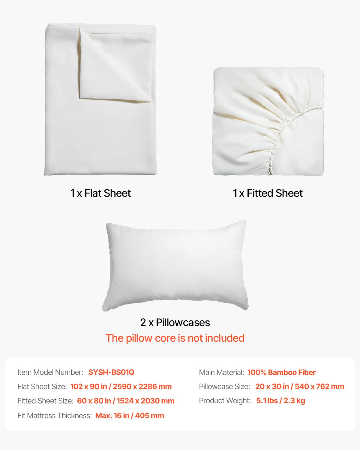 4-Piece Queen Bed Sheet Set Bamboo Fiber Bedding Set With 16 Deep Pocket