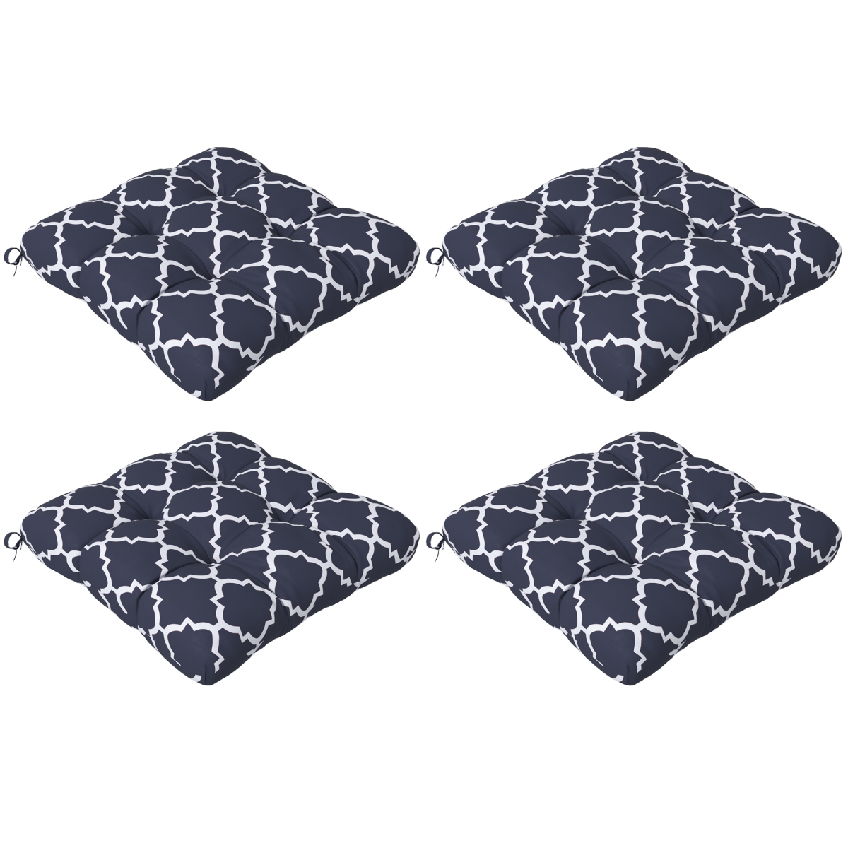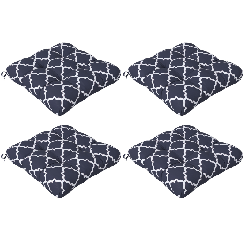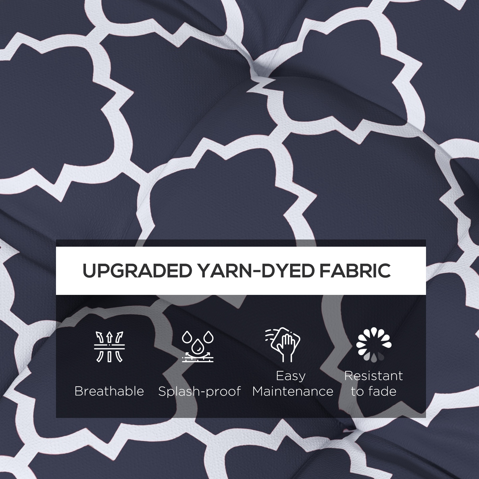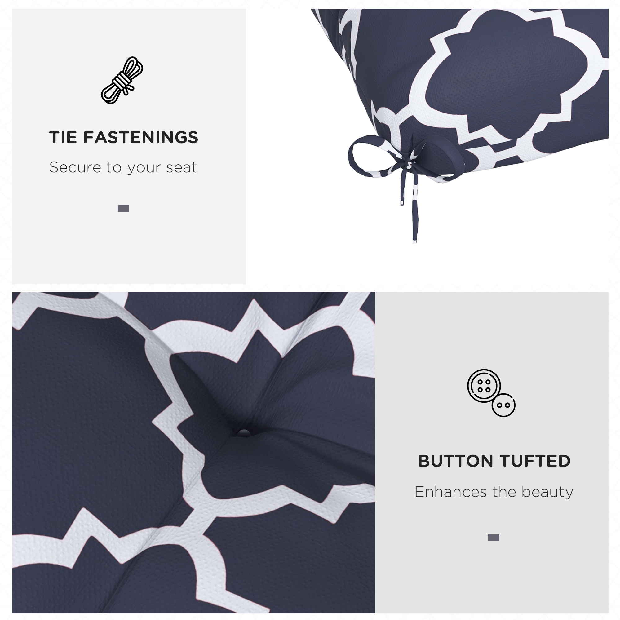 Colour meets comfort with this cushion set. Filled with thick foam, you'll enjoy sitting outdoors for extended hours. Fabric covers are soft, the tufting adds style. Flame retardant for safety, each cover is resistant to light stains for cleanliness. Complete with tie fastenings to secure to each seat.