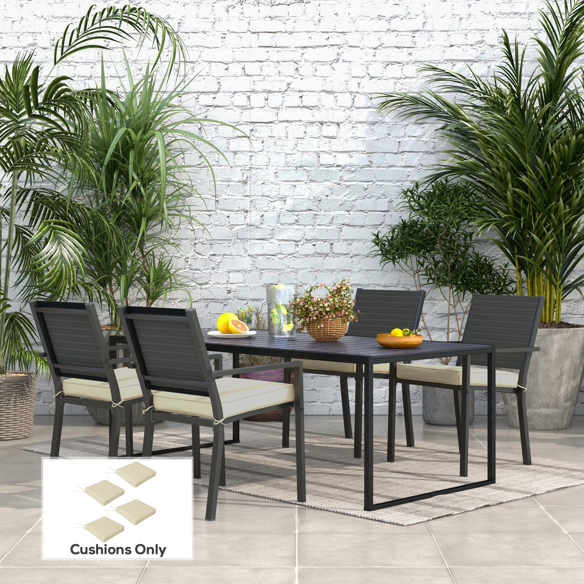 This set of four seat cushions brings comfort to you, wherever. Four 51 x 51cm cushions are great for plenty of different seats: add on top or use as replacement. The smooth fabric covers are resistant to light strains so they keep cleaner for longer. Finished with tie fastenings to secure to seat.