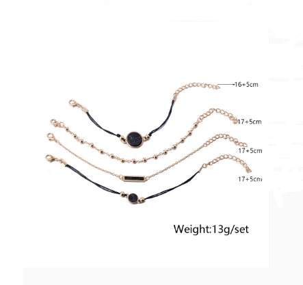 Product Name: European and American style personality black twill stone pattern bracelet Handmade chain black square trend temperament 4 piece set jewelry