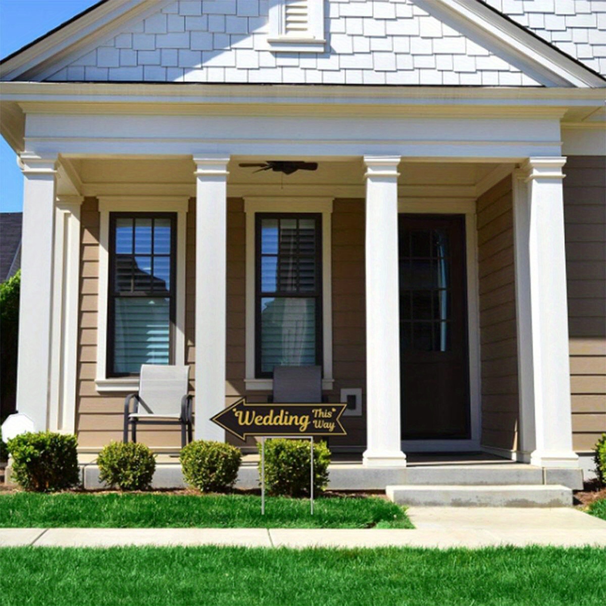 4-piece Wedding Directional Signs With Stakes, Black And Gold Arrow-shaped Garden Signs, Double-sided Corrugated Plastic Wedding Route Signs, Suitable For Reception Areas, Parking Lots, Outdoor Lawns,