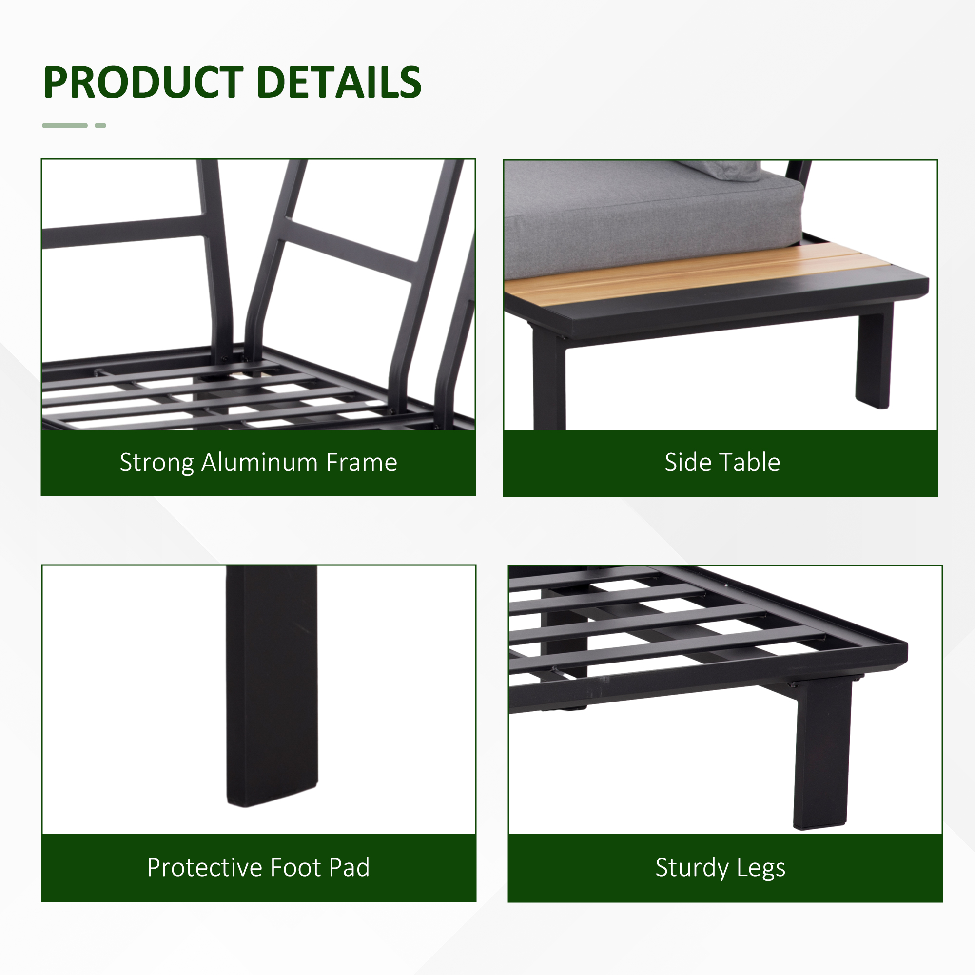 4 Pieces Aluminium Garden Furniture Set L Shape Sofa Set With Tables, Cushions For Indoor, Garden, Patio, Dark Grey