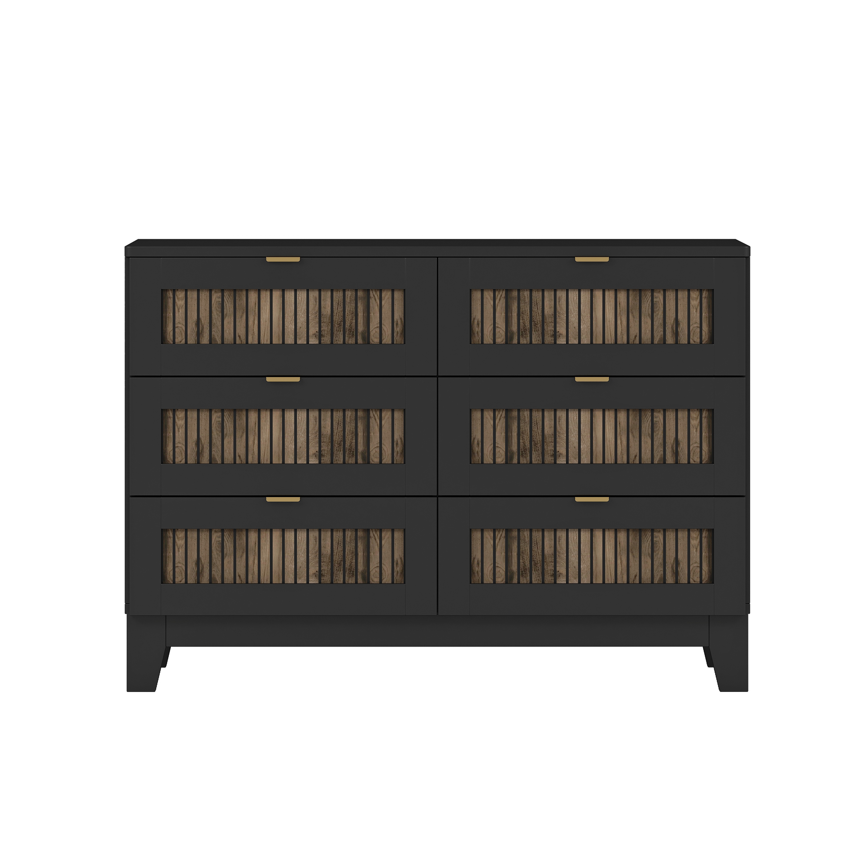 Product Name:4-Pieces Bedroom Sets, Queen Size Farmhouse Platform Bed with Wooden Strip Stickers Decoration, Storage Nightstand and Dresser with Metal Handle, Black