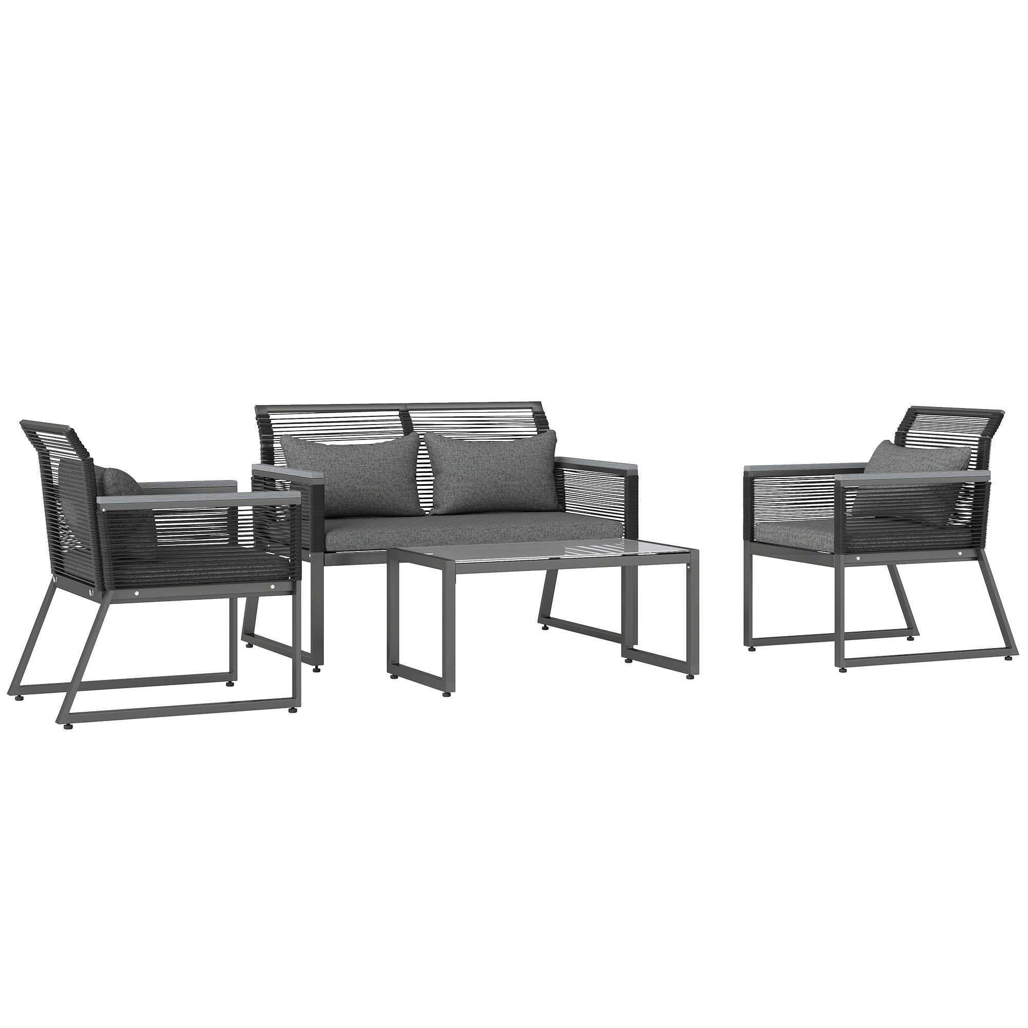 This four-piece PE rattan outdoor garden furniture set from is made of quality PE rattan, with metal frame underneath. The conservatory furniture has a modern look and feel, creating a raw aesthetic that fits in, great for indoor, outdoor patio, porch and poolside. Coffee table with wood grain ceramic tempered glass tabletop which is easy to clean and maintain. Start enjoying conversation and meals outdoors life with the outdoor furniture.