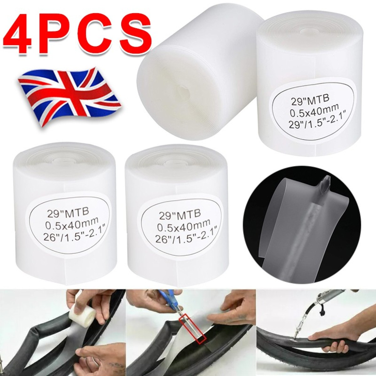 Size: Suitable for 29/26/27.5 inch bicycle tires, about 230cm long, 4cm wide, 0.5mm thick