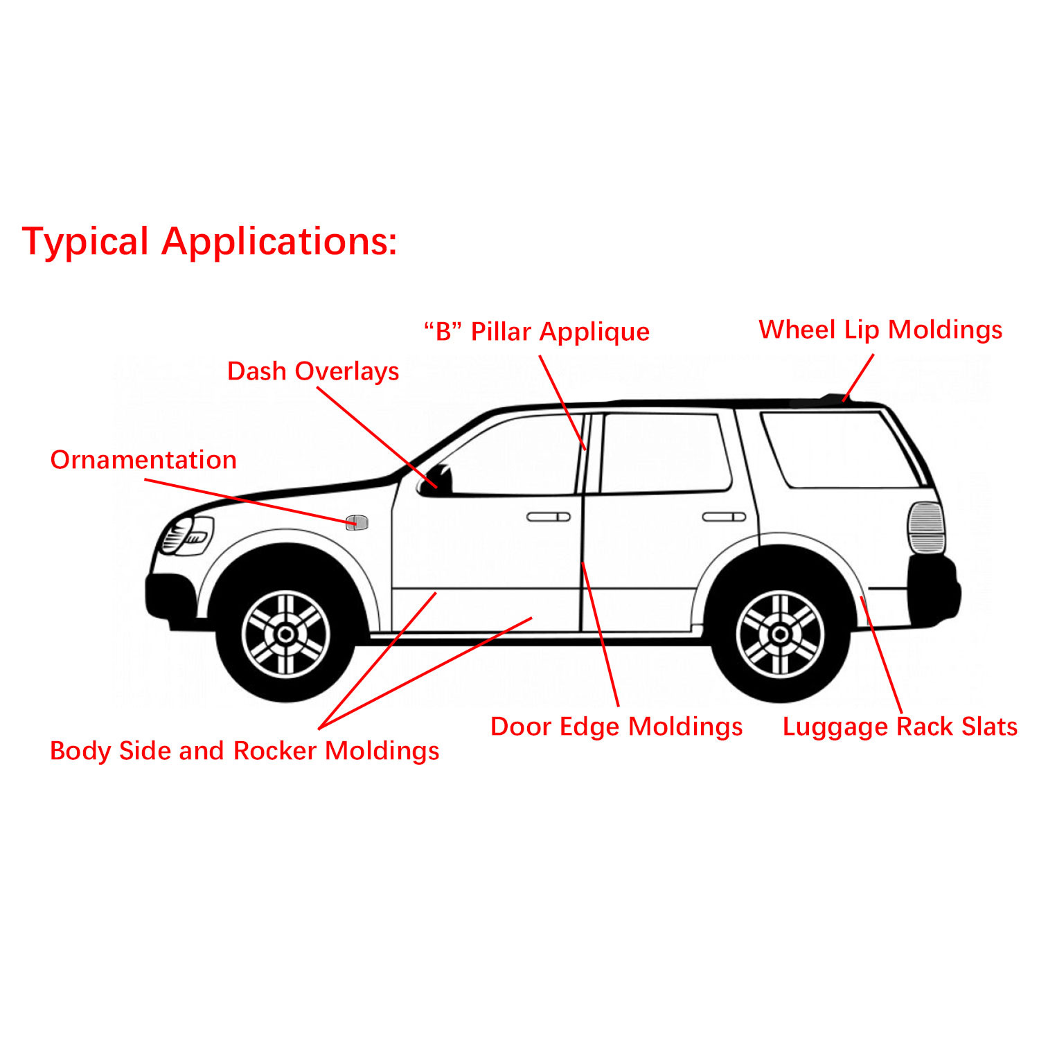 ** Car Adhesive Tapes*:The automotive double sided foam tape is designed for attaching trim parts and bonding seals throughout the car body including door and window seals,door cladding and inlay,roof rails and anything auto or truck related.