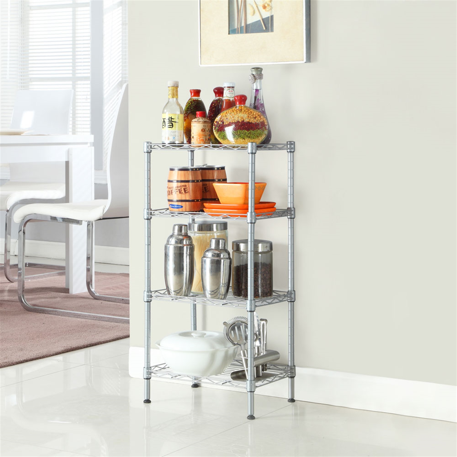 7. With 4 shelves for classifying different gadgets