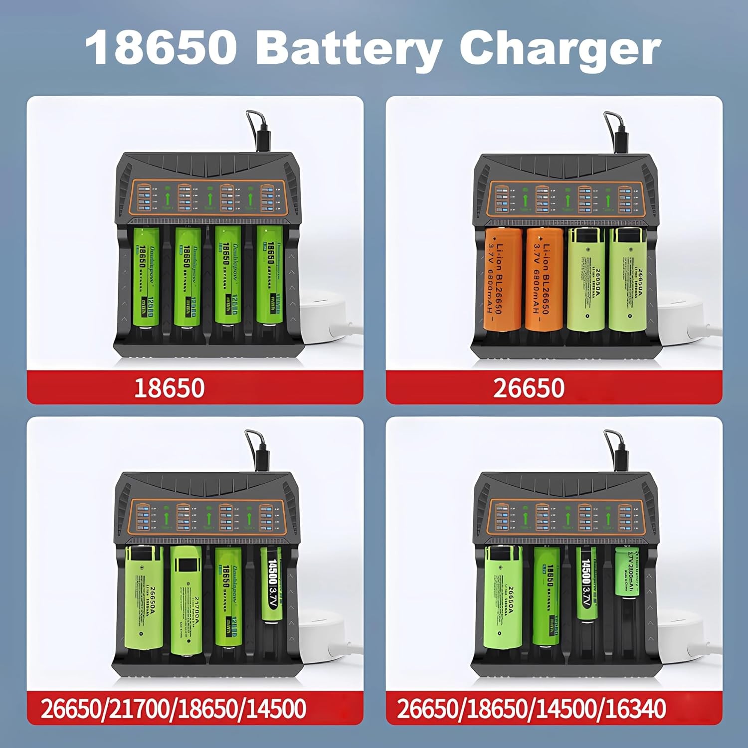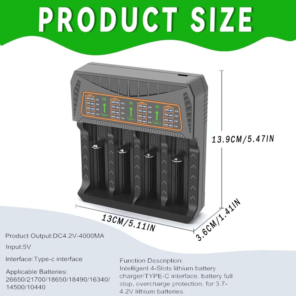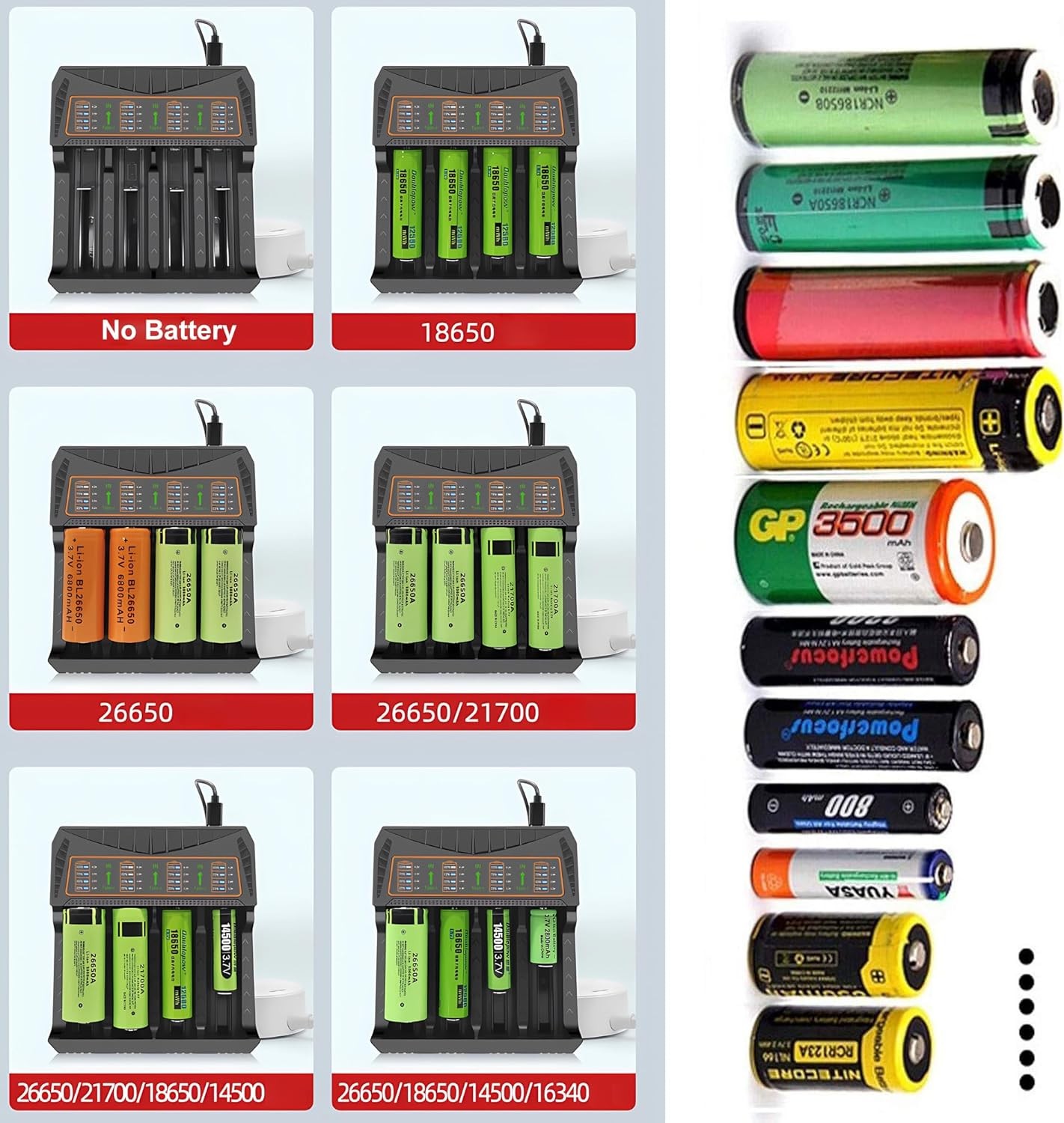 Features:- Compatible Model: IMR, Li-Ion: 26700, 26650, 26500, 25500, 22700, 21700, 20700, 22650, 22500, 18700, 18500, 18490, 18350, 17650, 16650, 16340, 14650, 14500, 10400; Ni-MH / Ni-Cd: A / AA / AAA / AAAA / C / SC / F6.