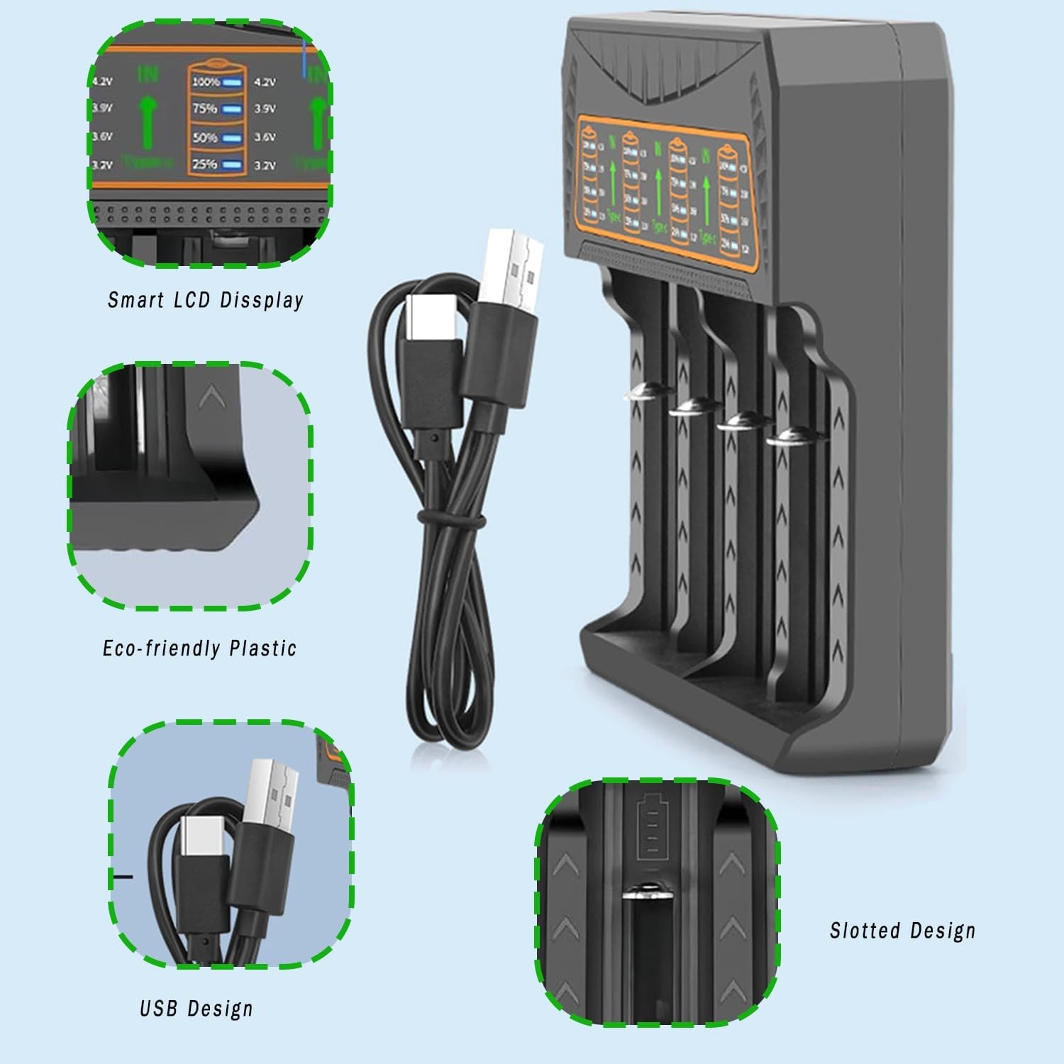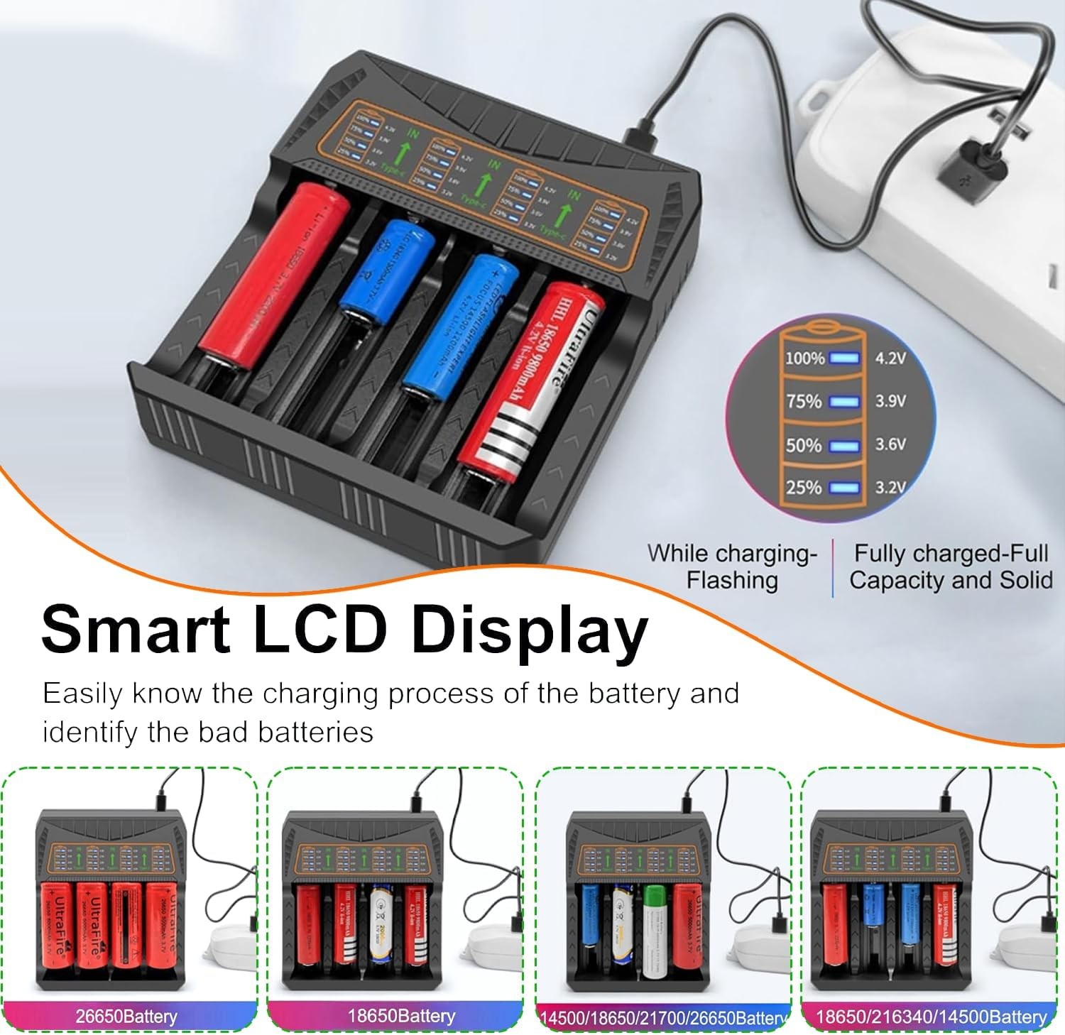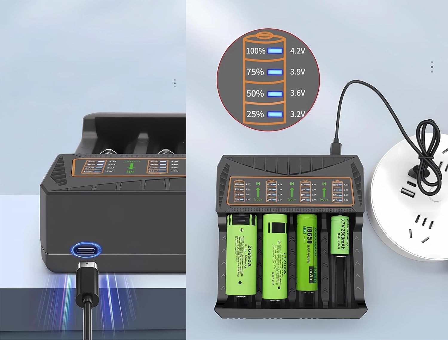 Features:- Compatible Model: IMR, Li-Ion: 26700, 26650, 26500, 25500, 22700, 21700, 20700, 22650, 22500, 18700, 18500, 18490, 18350, 17650, 16650, 16340, 14650, 14500, 10400; Ni-MH / Ni-Cd: A / AA / AAA / AAAA / C / SC / F6.
