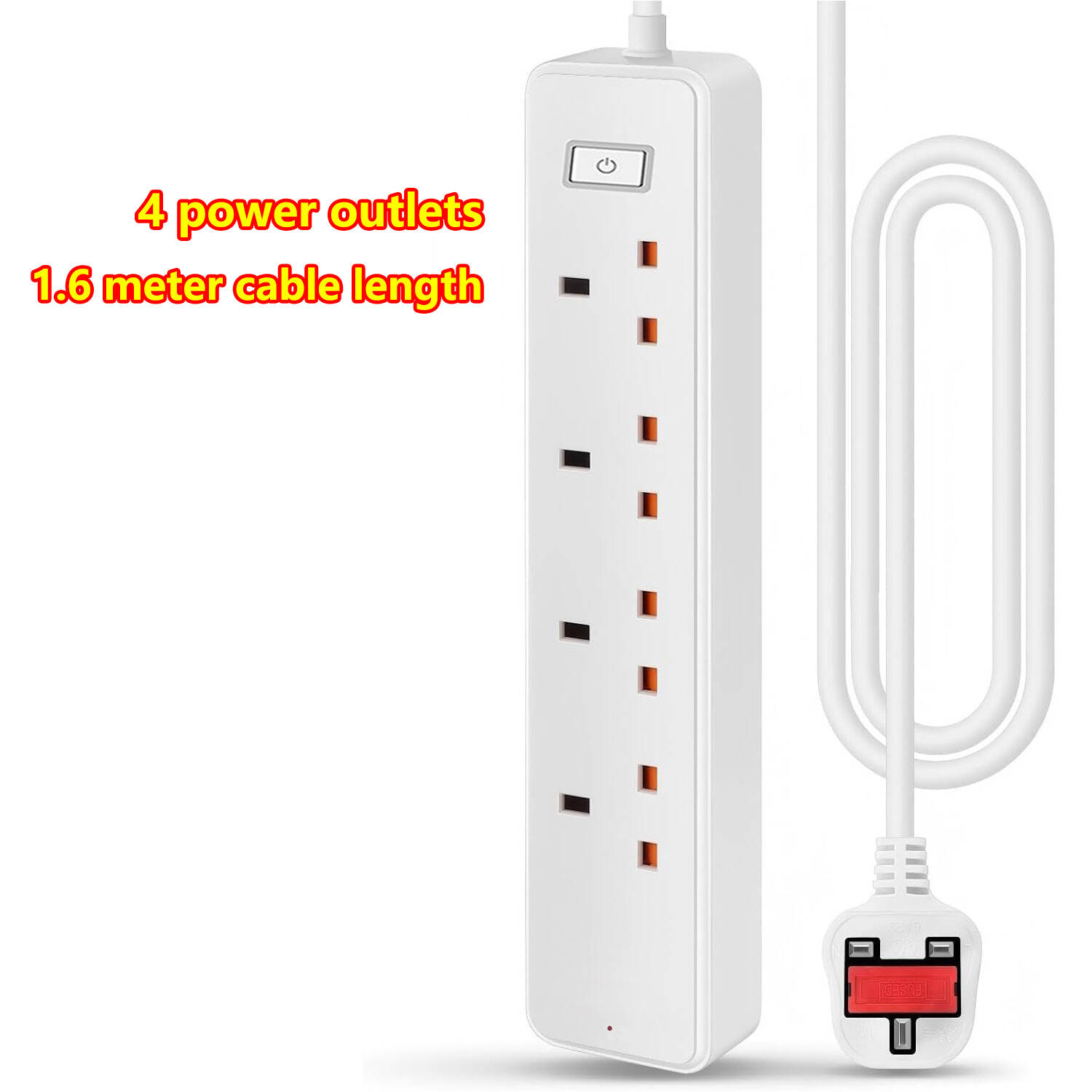 4-Socket Extension Lead Ports 3.4A Smart Fast Charging Total Control Switch 13A 3120W 1.6m Power Cord Fireproof PC & ABS UK Plug Surge Protector Power Strip