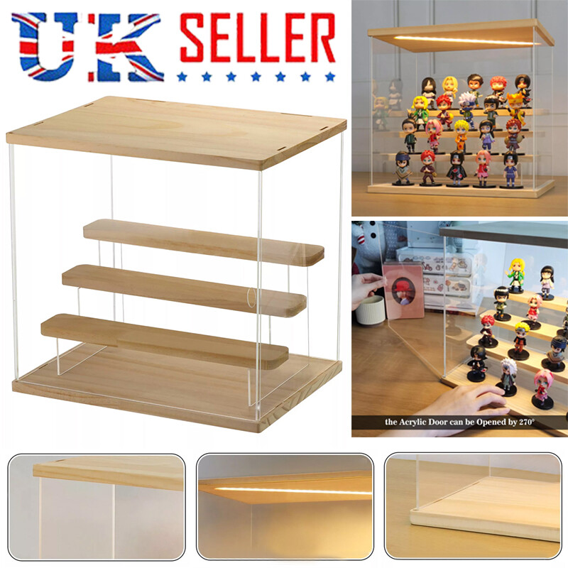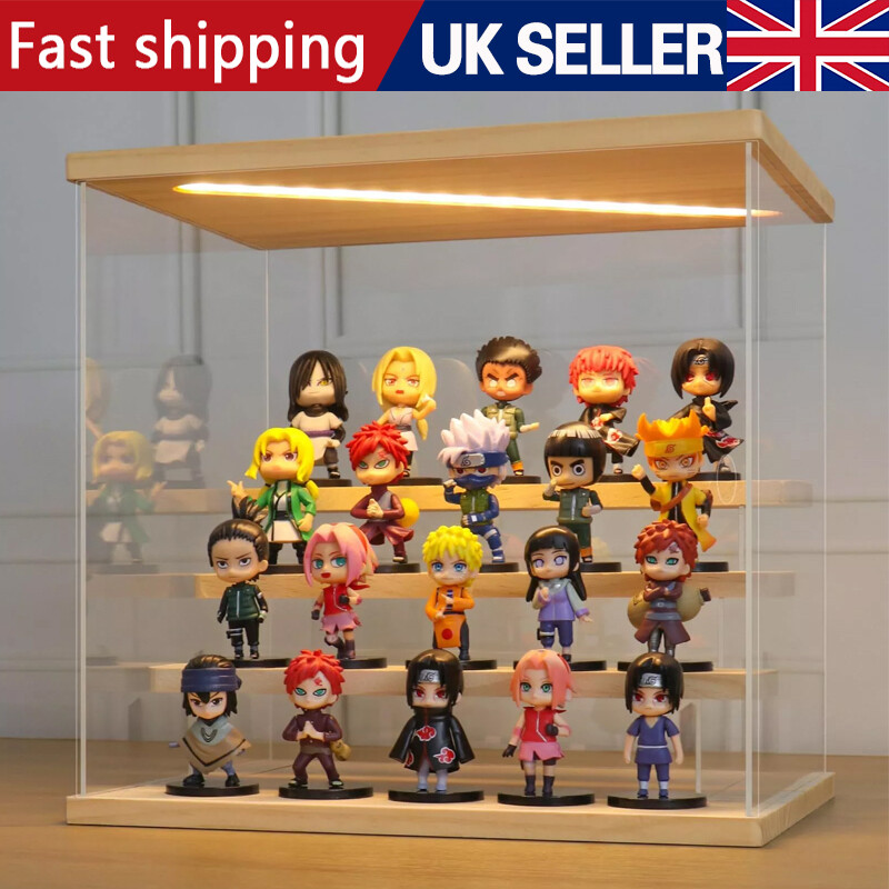 4 Tier Acrylic Display Case With LED Light Transparent Dustproof Showcase Boxes