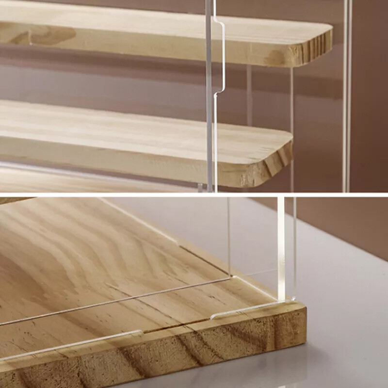 Assemble the acrylic display case with gloves and wipe it with a clean cloth after assembly. You just connect the sides to the bottom and top, then assemble the ladder.