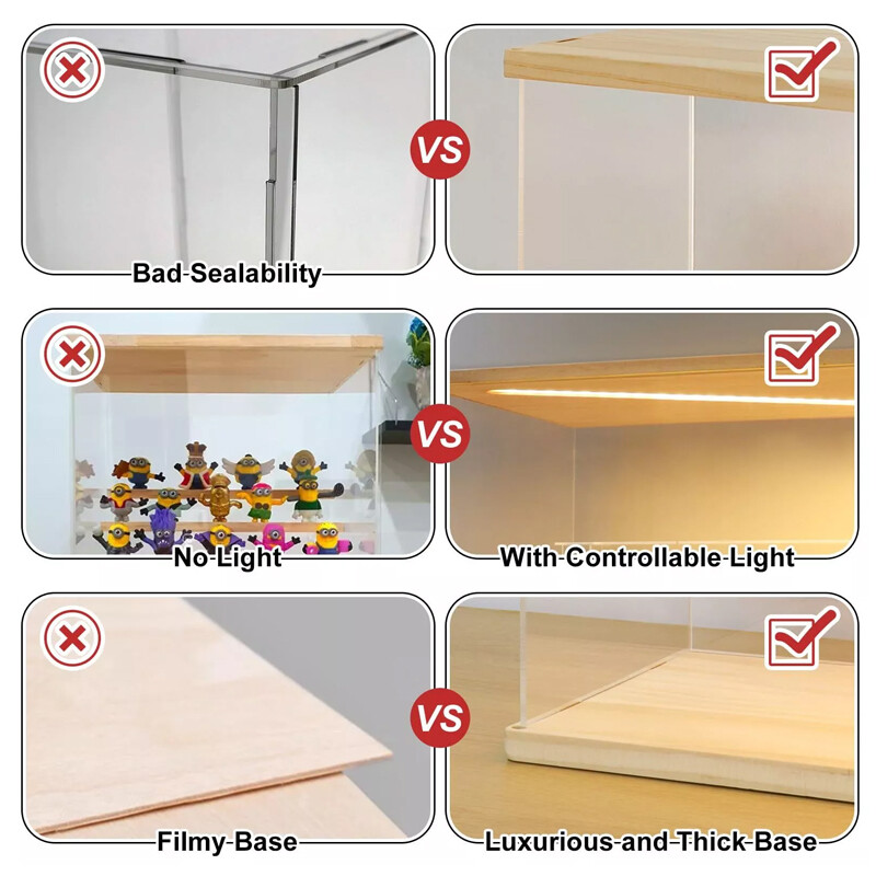 Our display case is made from high transparency acrylic material, wear-resistant, sturdy and durable, which allows you to display your collections in all directions.