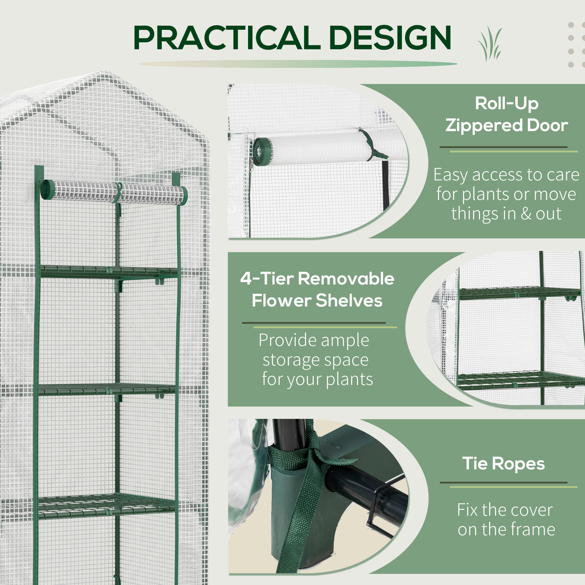 This walk-in garden greenhouse is perfect for the home gardening to protect and grow your plants in cold weather outside. The steel frame and PE cover will keep your plants and vegetables more secure than on their own. The roll-up design of the hot house ensures excellent ventilation for your plants, and the zipped door provides easy access for you to take care of them. Start your backyard gardening today with this compact warm house from throughout the year.