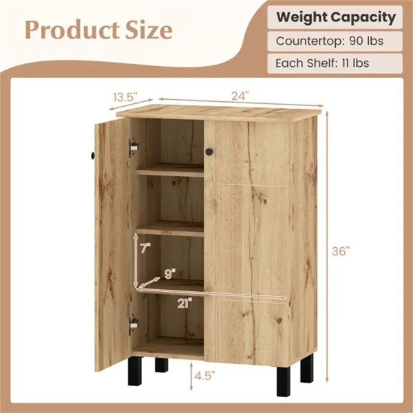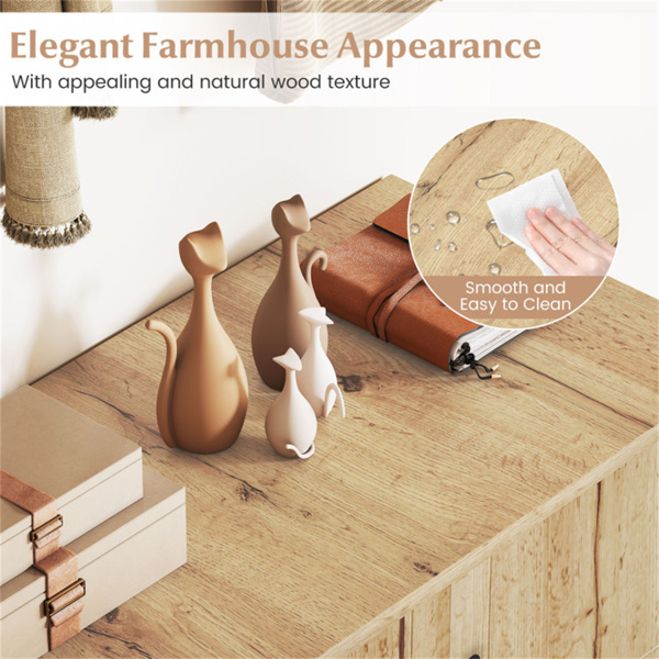 • Spacious Organization: Featuring 4-tier storage space inside, this shoe organizer keeps your footwear neatly arranged. Moreover, the wide top surface provides convenient space for everyday items like keys, bags, or decorations. • Customizable Storage: 3 of shelves inside the shoe cabinet are removable, allowing you to easily adjust the space to fit various types of shoes, from boots to flats, accommodating all your footwear needs. • Sturdy & Safe Build: Constructed from premium wooden structure with 4 sturdy support legs, this shoe storage cabinet offers durability and stability. The included anti-tip hardware ensures the unit remains secure and safe in your living space. • Elegant Finish: With appealing and natural wood texture, this farmhouse storage cabinet adds rustic charm to any room. And the surface of the cabinet is smooth and easy to clean, maintaining a beautiful appearance over time. • Versatile Placement: Ideal for entryways, living rooms, closets, or hallways, this shoe organizer provides practical storage while blending seamlessly with your home decoration wherever you place it.
