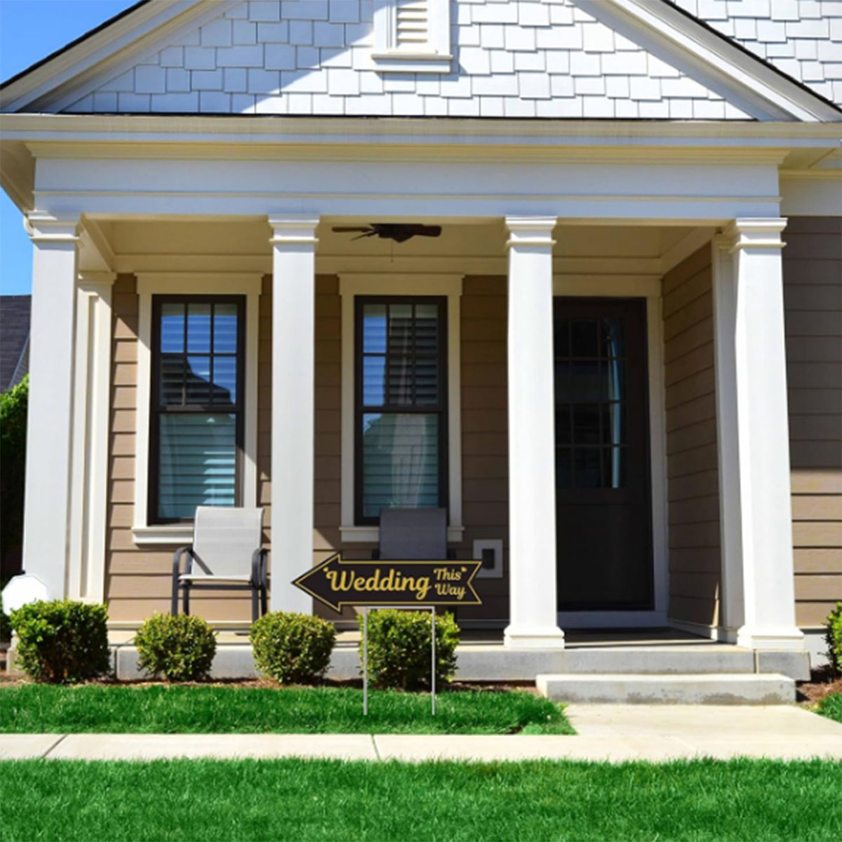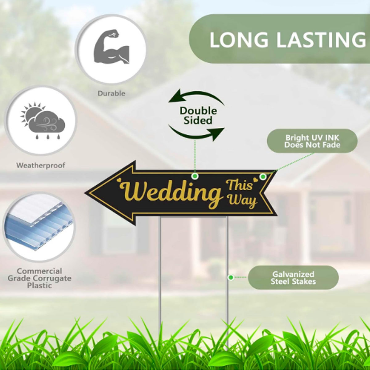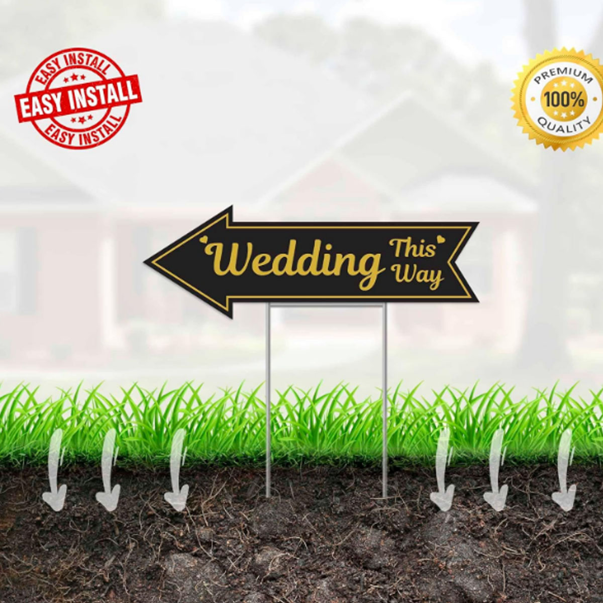 Specifications Material: Plastic Color: Multicolor Size:43*15*5cm/17*6*2inch Package contents: 4PCS Wedding This Way Sign with Stake