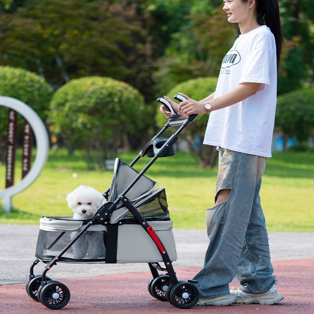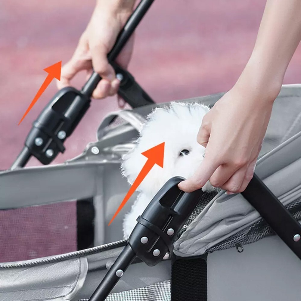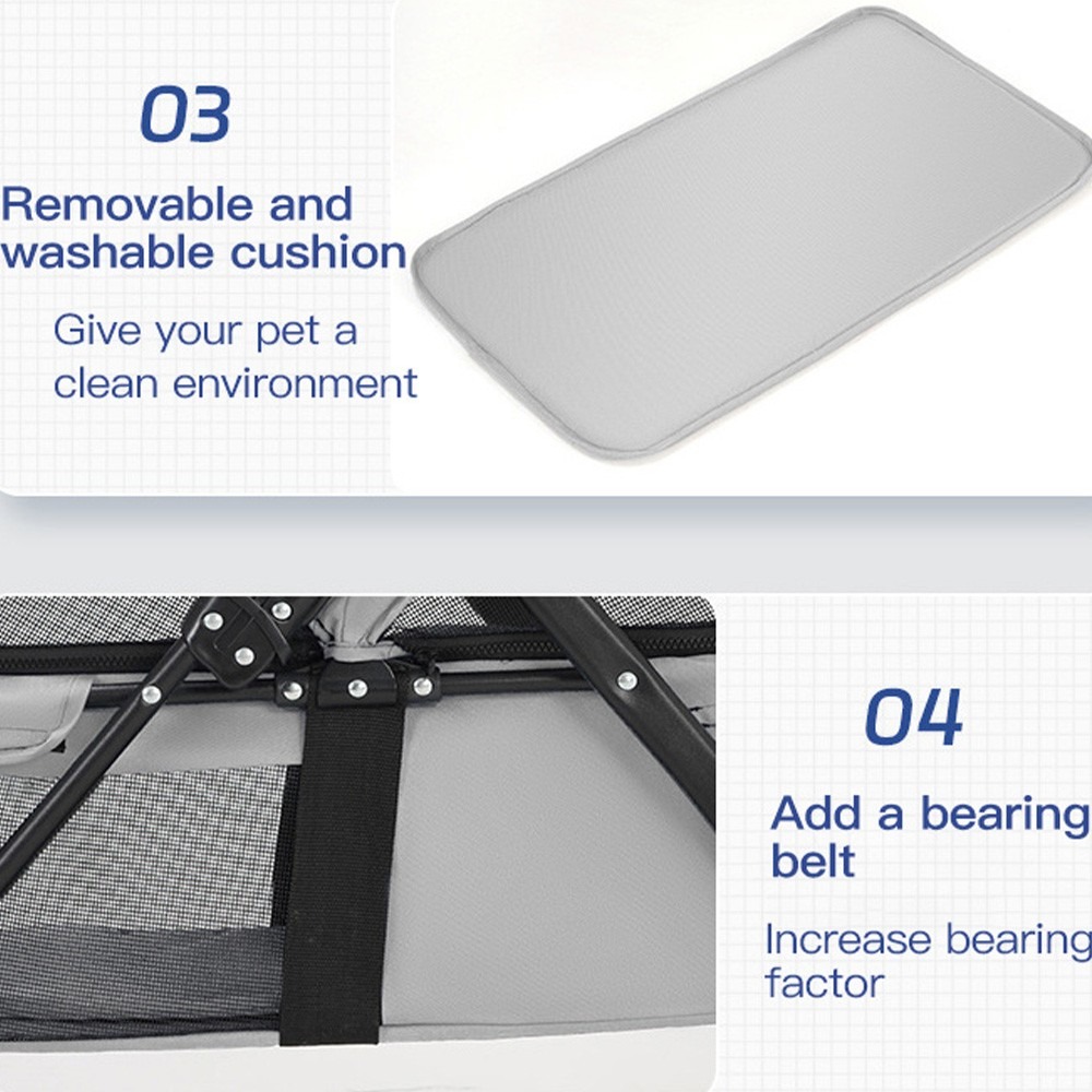 Breathable and Comfortable: The stroller's mesh design ensures excellent breathability, preventing your pet from feeling stuffy or overheated. Plus, the visible mesh allows you to keep an eye on your furry friend and interact with them while on the go.