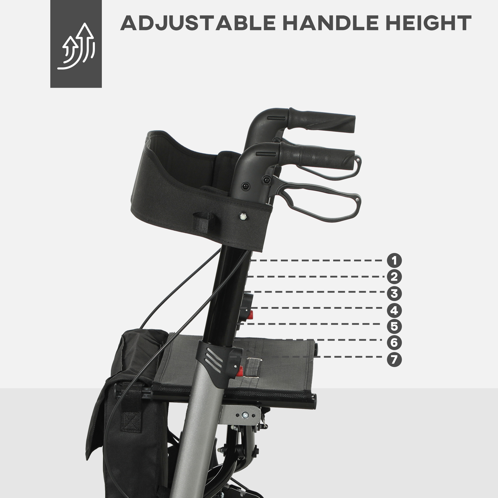 This lightweight rollator walker rolls with you, making journeys stress free. A powder coated aluminium frame for a strong, yet lightweight core, it is fitted with a seat so you can take a break whenever you want. It can be folded into a smaller size for convenient storage and transport. A storage bag to take small essentials with you on the journey. Four wheels for smooth movement, this mobility walker is complete with a dual brake for safety.