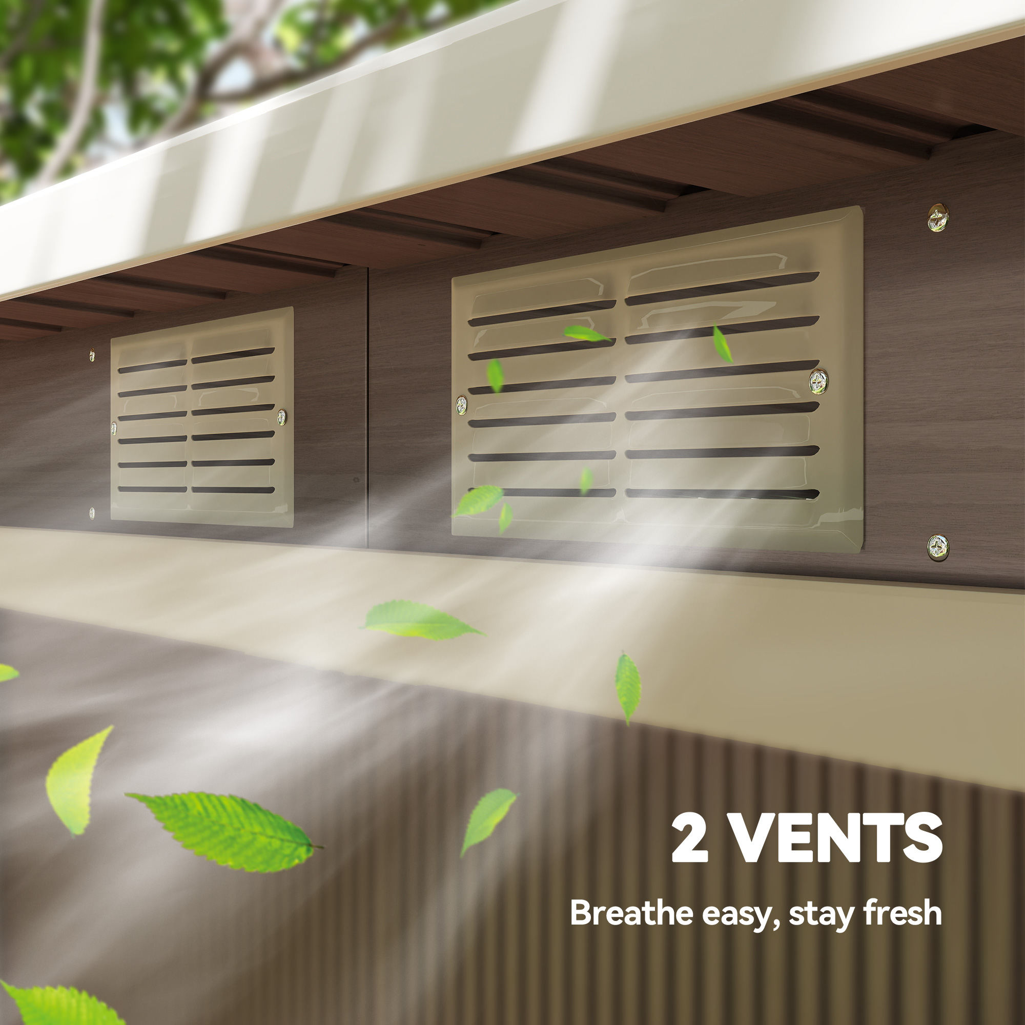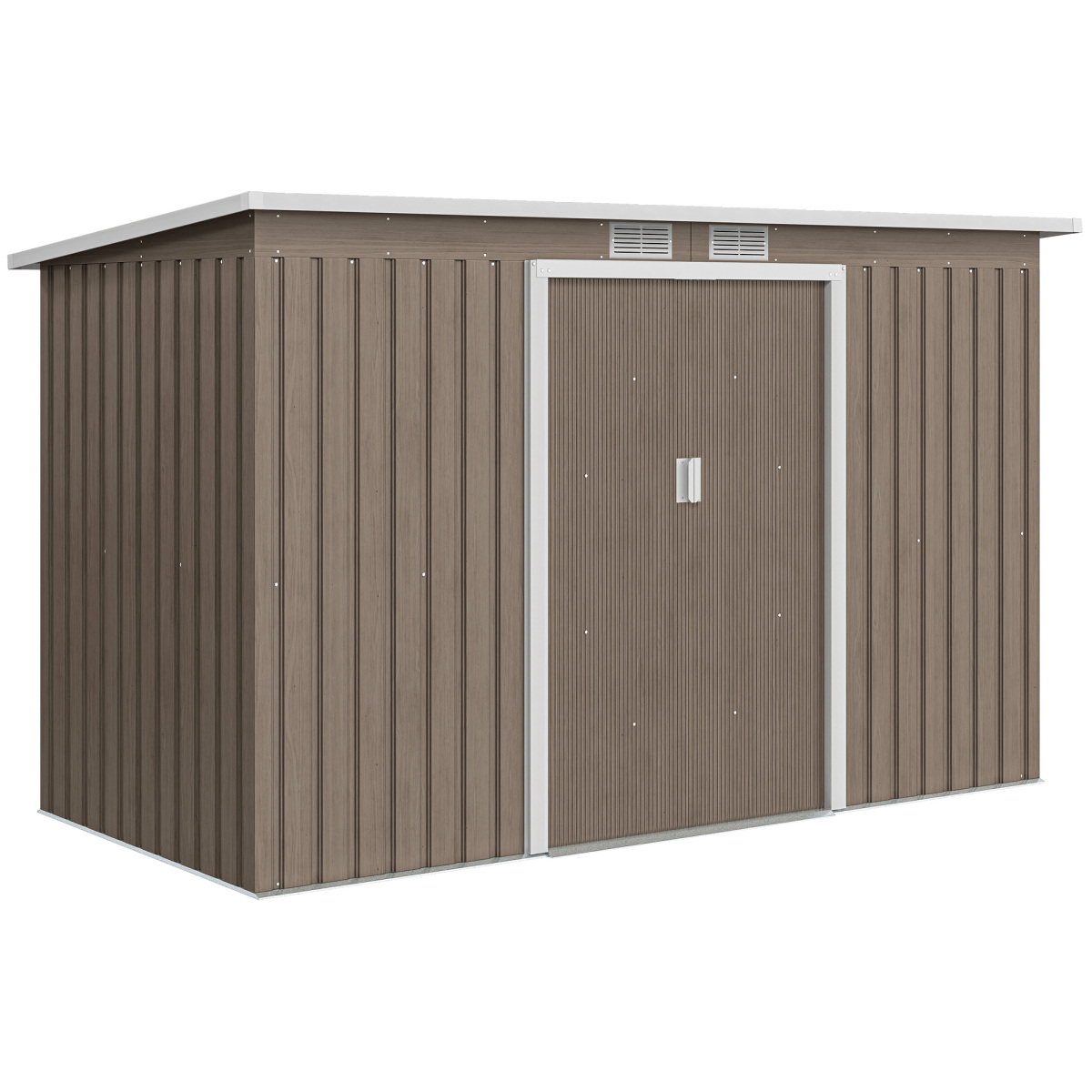 This garden tool shed is a great for keeping tools and equipment stored together. Made from galvanised steel, the structure is tough, so it's suitable for outdoor use. A sliding double door for easy access in and out. Two ventilation windows allow air to flow inside to prevent mold and humidity. A foundation kit is also included, so you have everything you need for installing this outdoor shed.