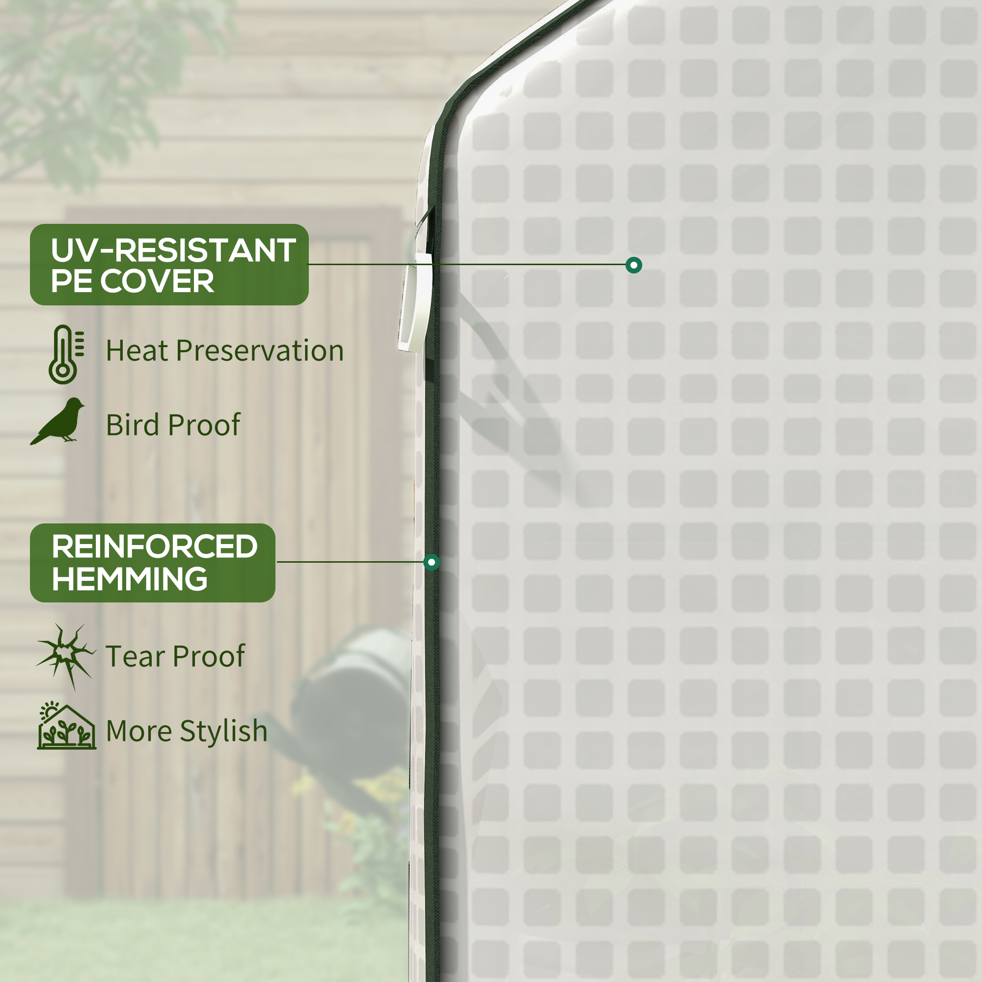 - Outdoor Ready: Built with a powder-coated steel frame reinforced with horizontal support tubes, patio greenhouse gives durability and corrosion resistance. The airtight cover provides secure protection for lasting plant care - bury the edges in soil and anchor with ropes and spikes.
