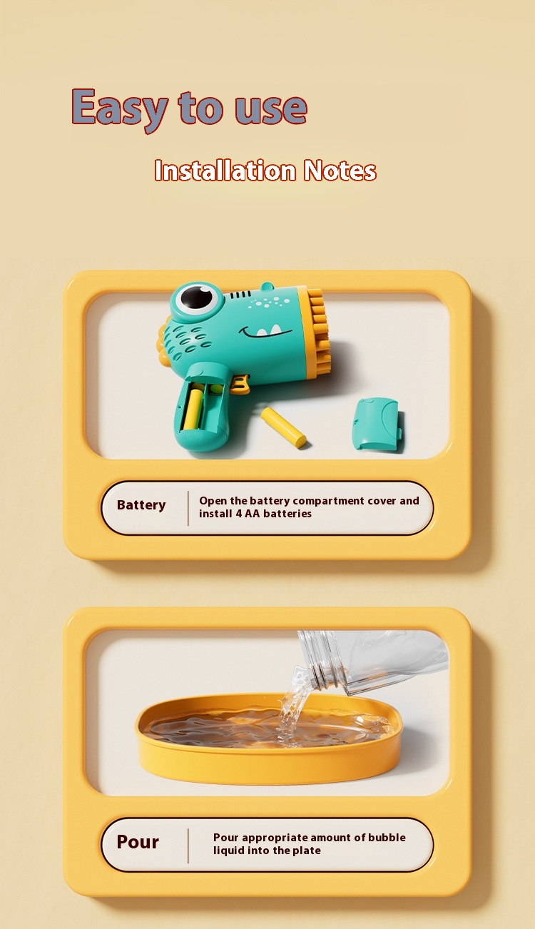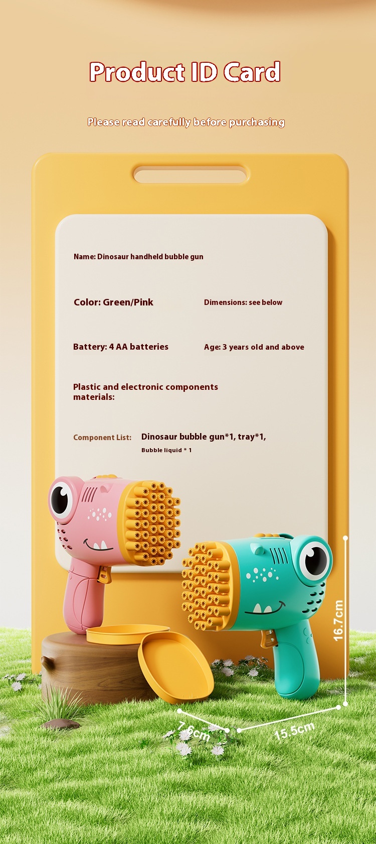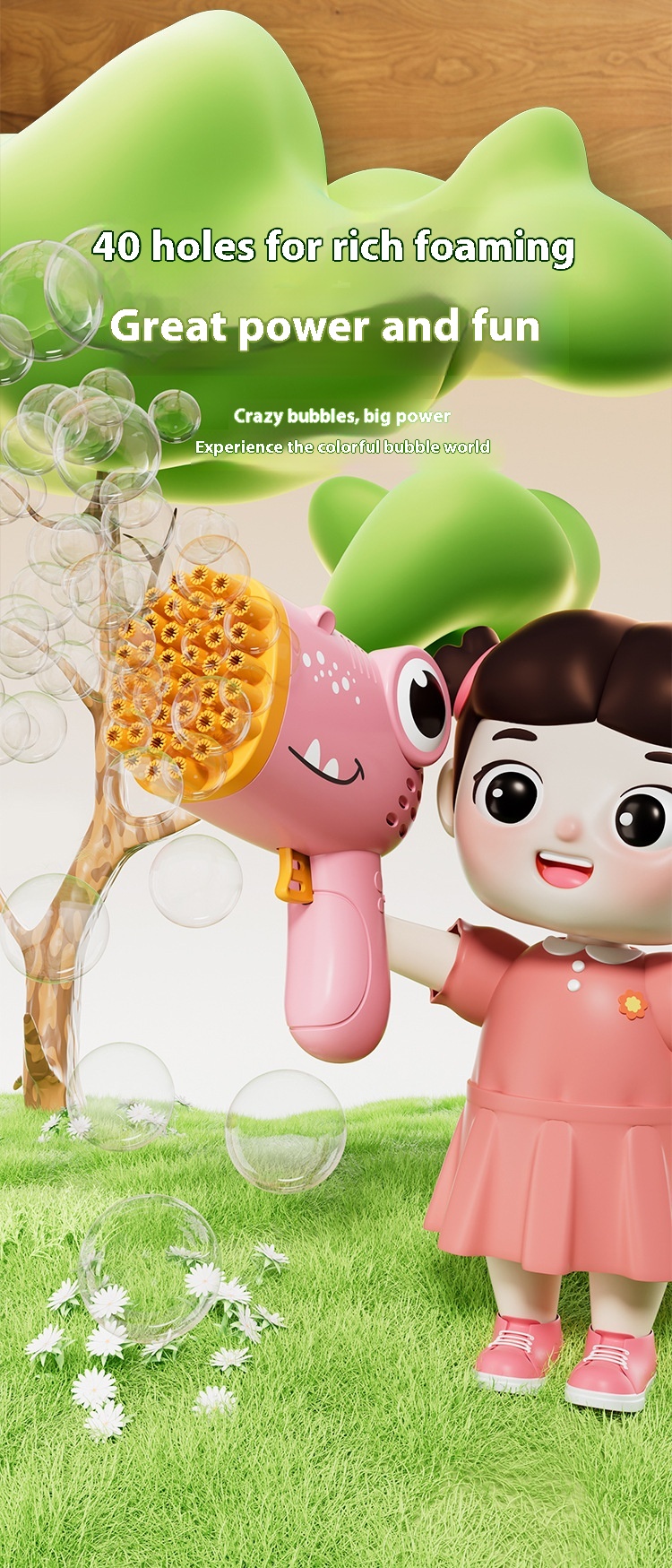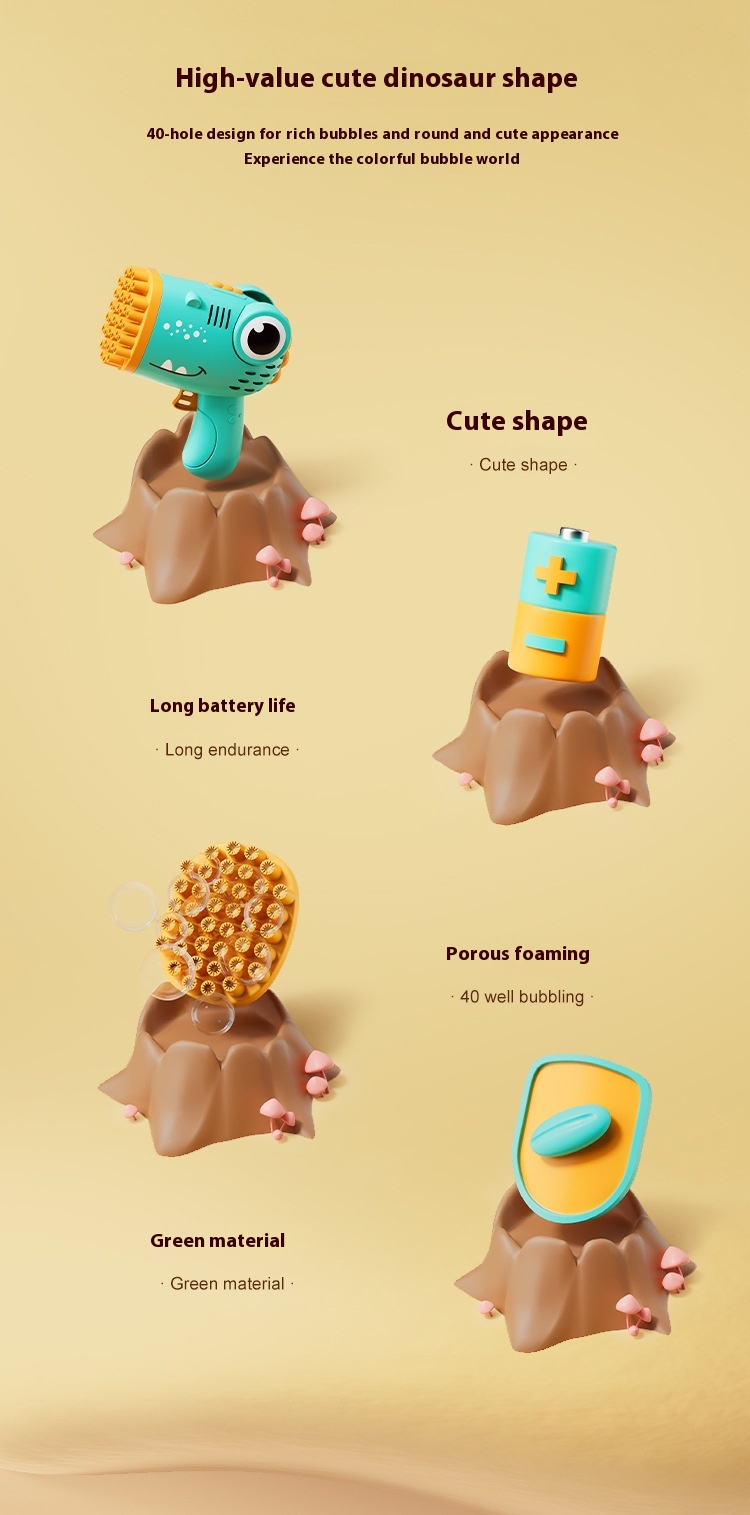 Color: 40-hole Dinosaur Bubble Machine [pack] Pink# need to bring your own battery, 40-hole Dinosaur Bubble Machine [pack] Green# need to bring your own battery