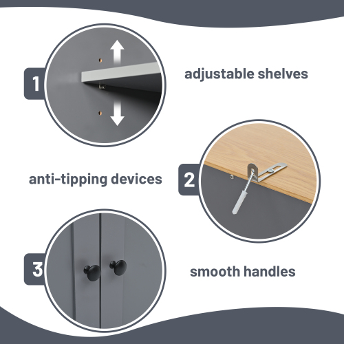 The [Adjustable Shelf] cabinet is cleverly designed with two adjustable shelves, each of which can be placed at 3 different heights to provide a flexible storage solution. Underneath, the cabinets are neatly divided into four sections, making it easy to sort and access various items. This design cleverly optimizes space while bringing a customized feel to your kitchen organization.