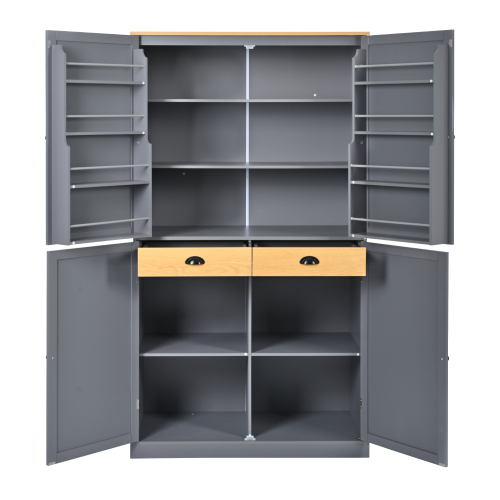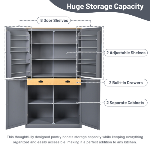 [Huge Storage Capacity] This extended 40.2x20-inch (LXW) kitchen pantry is larger than the usual 30x15-inch size and has been designed with practicality in mind. It's made of durable painted MDF and features two built-in drawers, two separate cabinets, two adjustable shelves, and eight door shelves. This well-designed pantry increases storage capacity while keeping everything organized and easily accessible, making it the perfect addition to any kitchen.